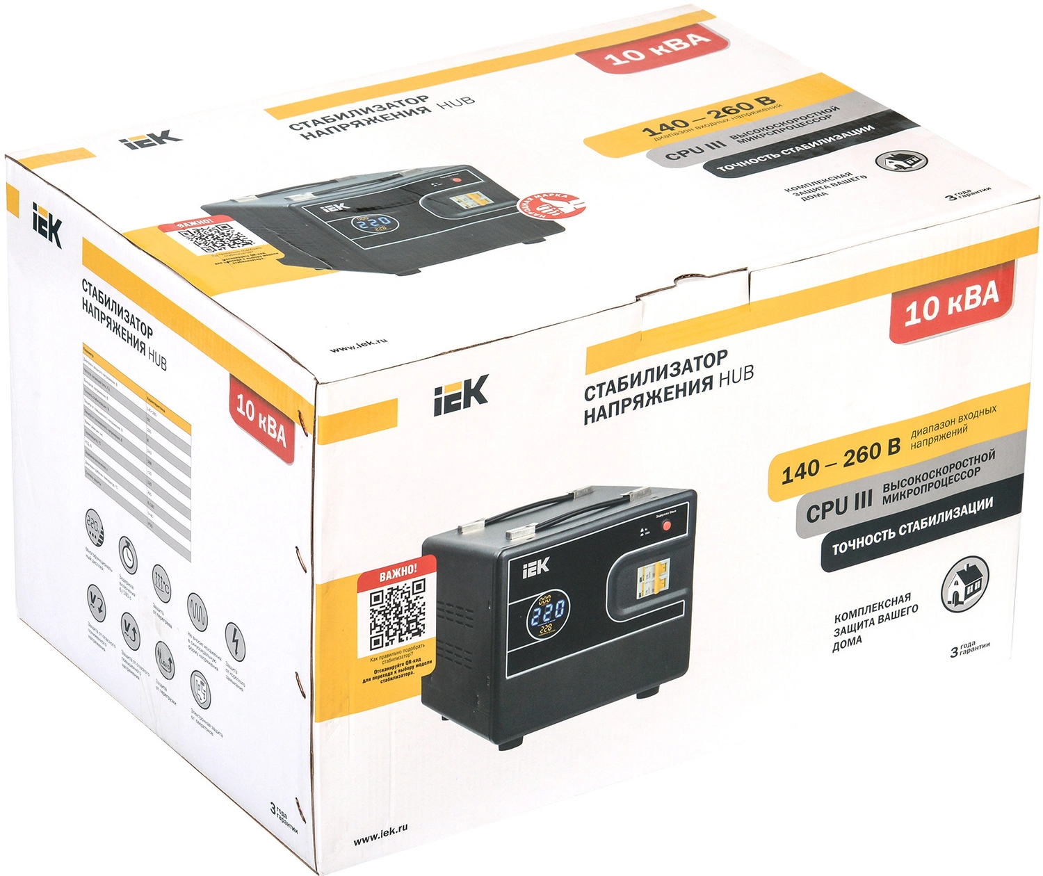 Стабилизатор напряжения IEK Hub 10кВА однофазный черный (IVS21-1-010-13)