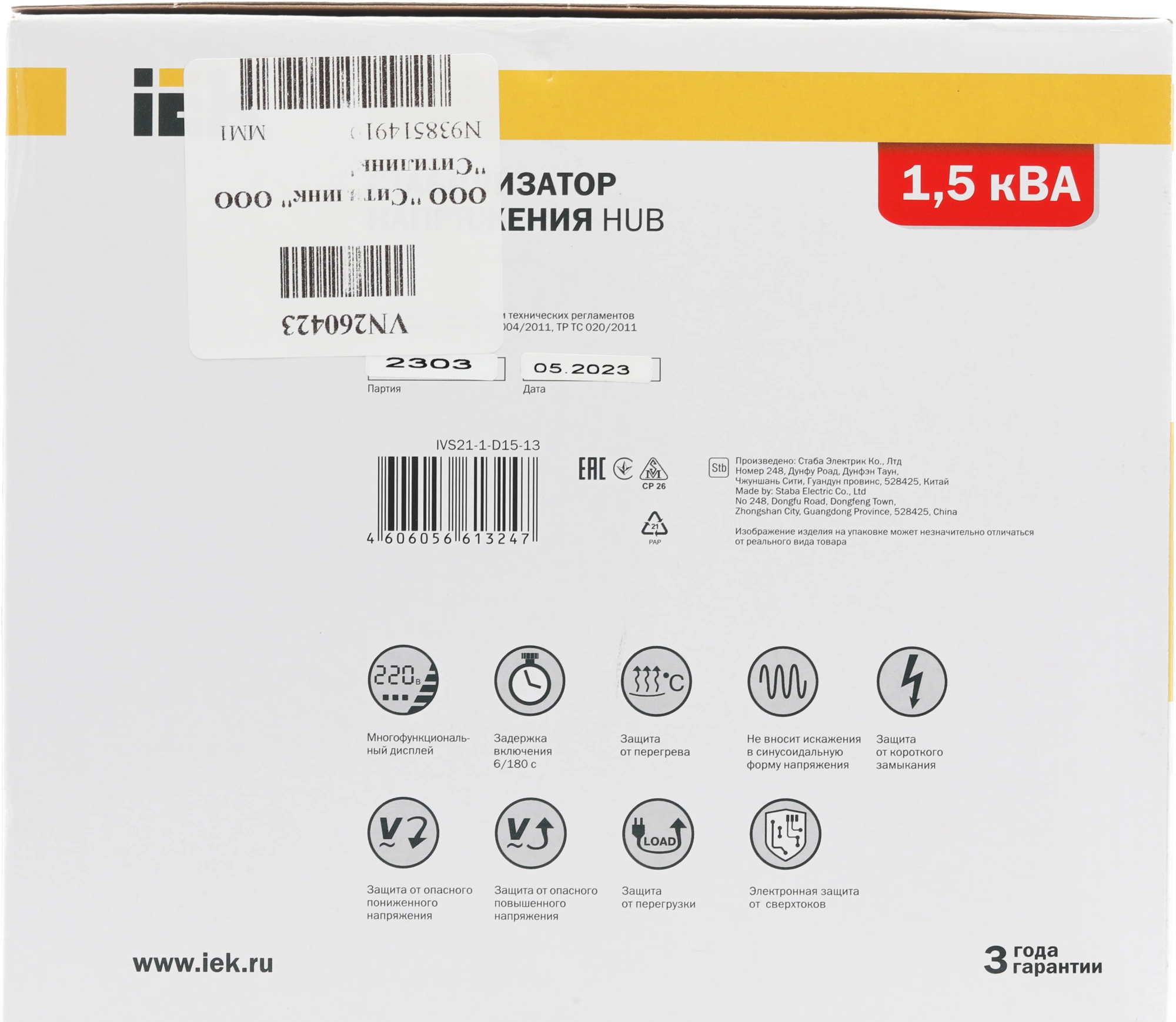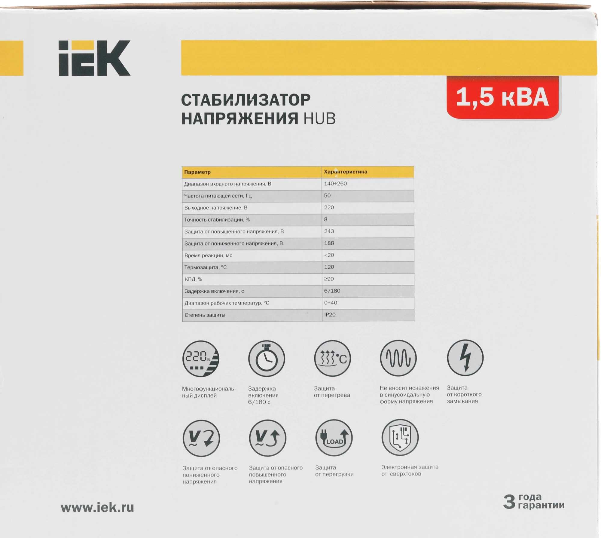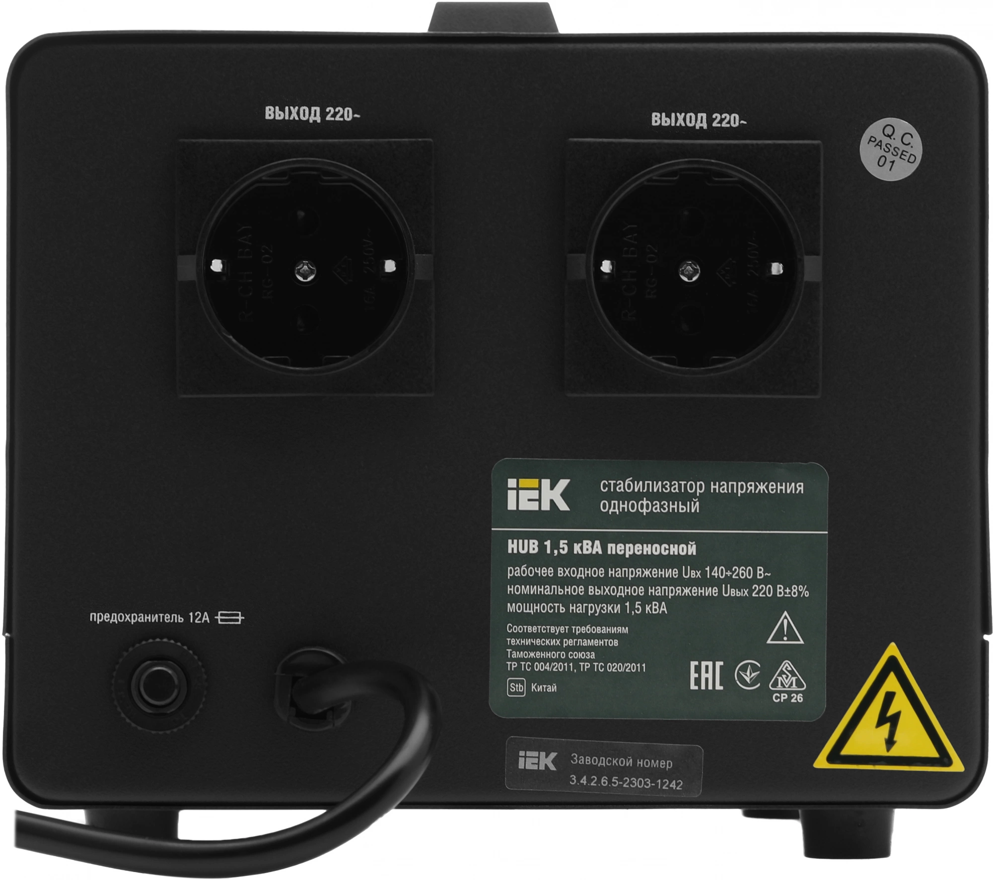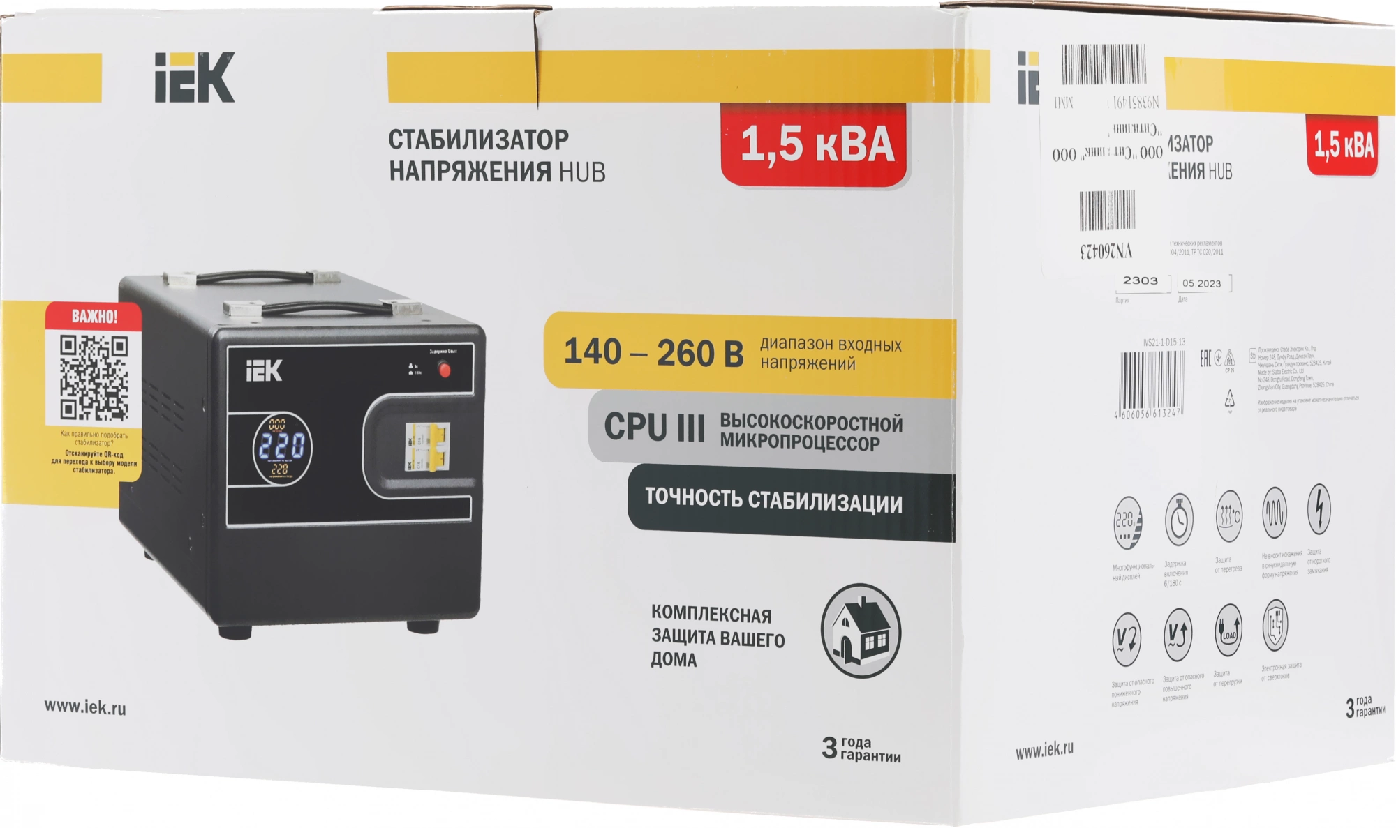 Стабилизатор напряжения IEK Hub 1.5кВА однофазный черный (IVS21-1-D15-13)