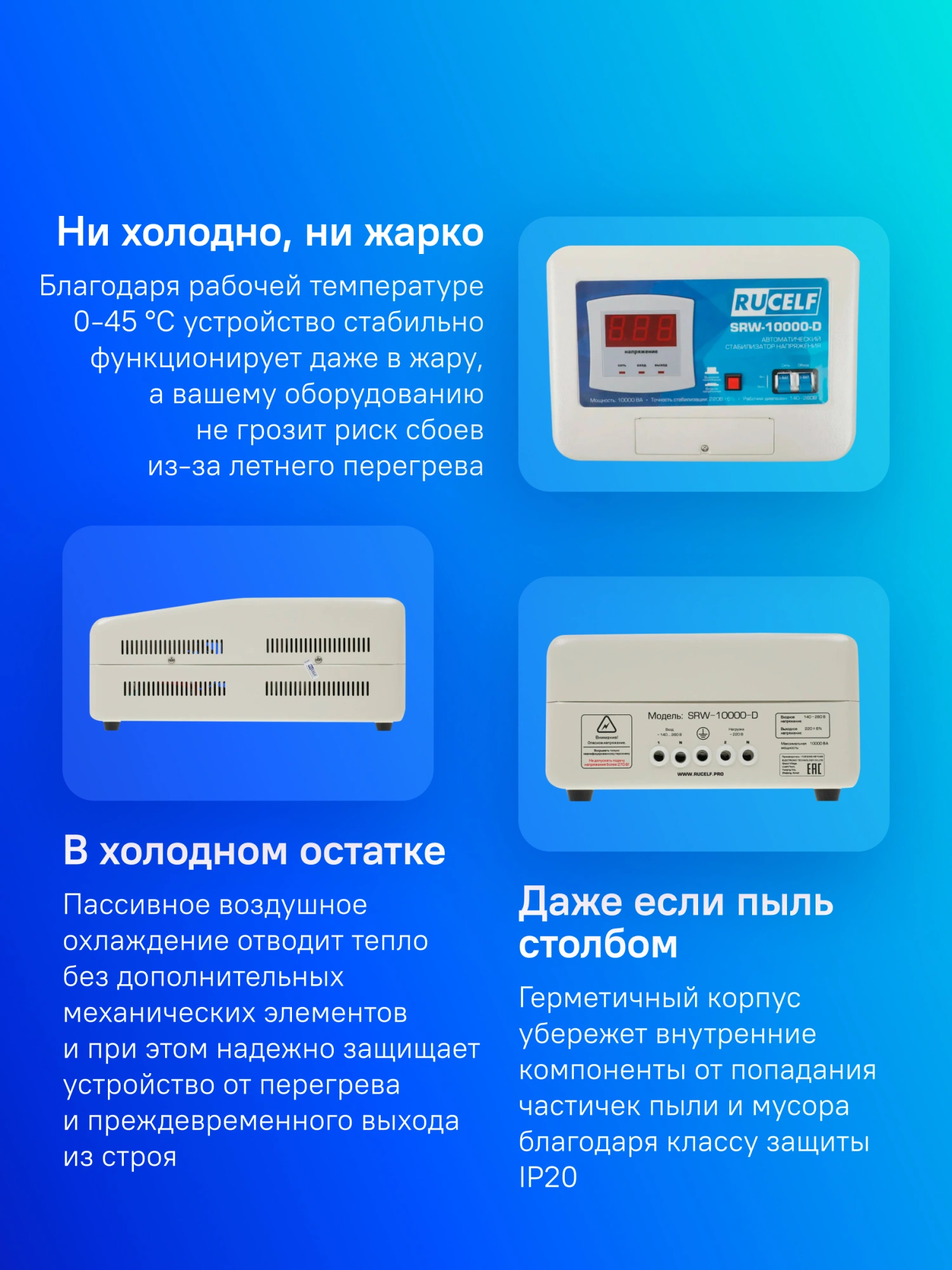 Стабилизатор напряжения Rucelf SRW-10000-D 10кВА однофазный белый