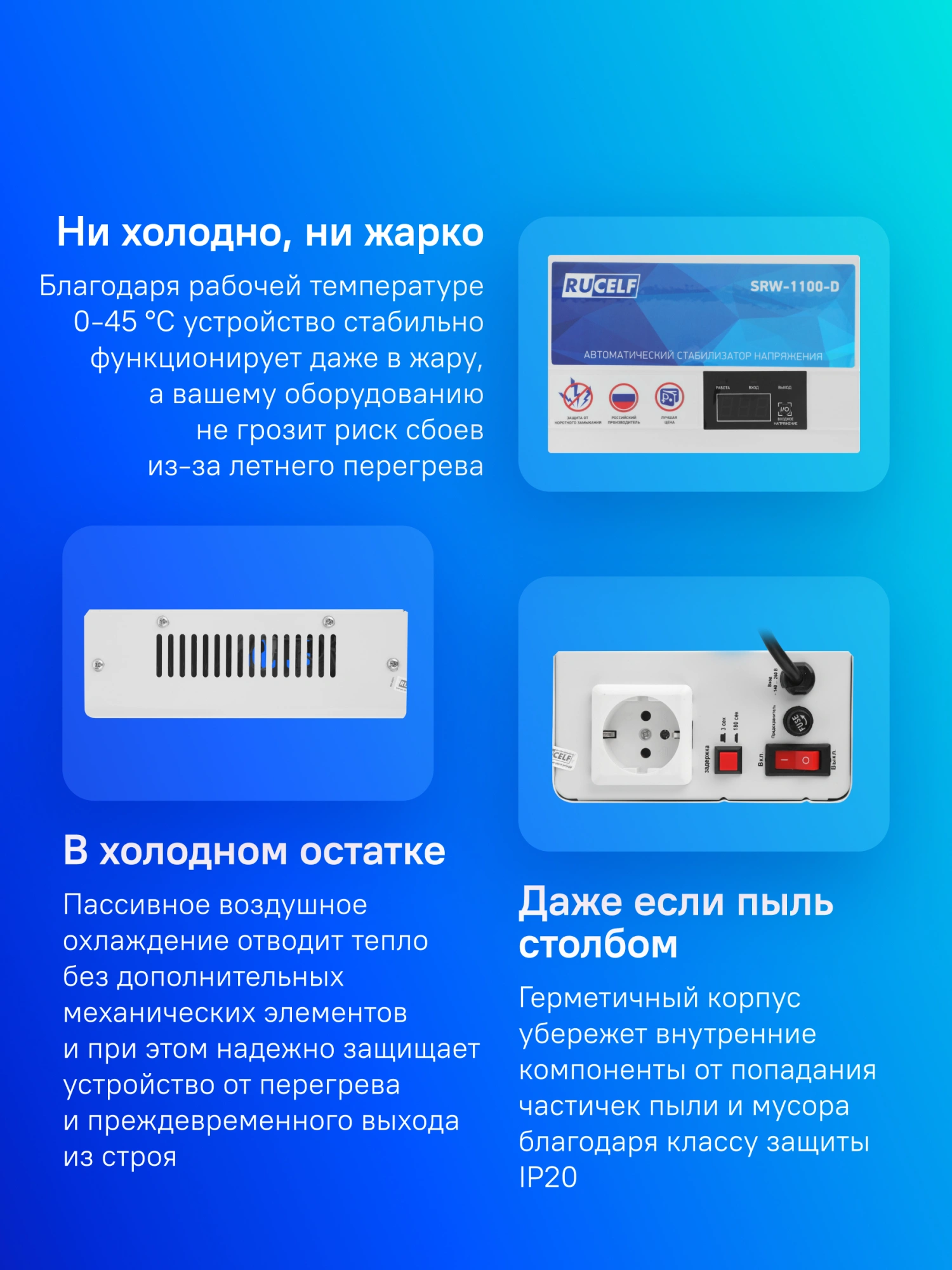 Стабилизатор напряжения Rucelf SRW-1100-D 1кВА однофазный белый