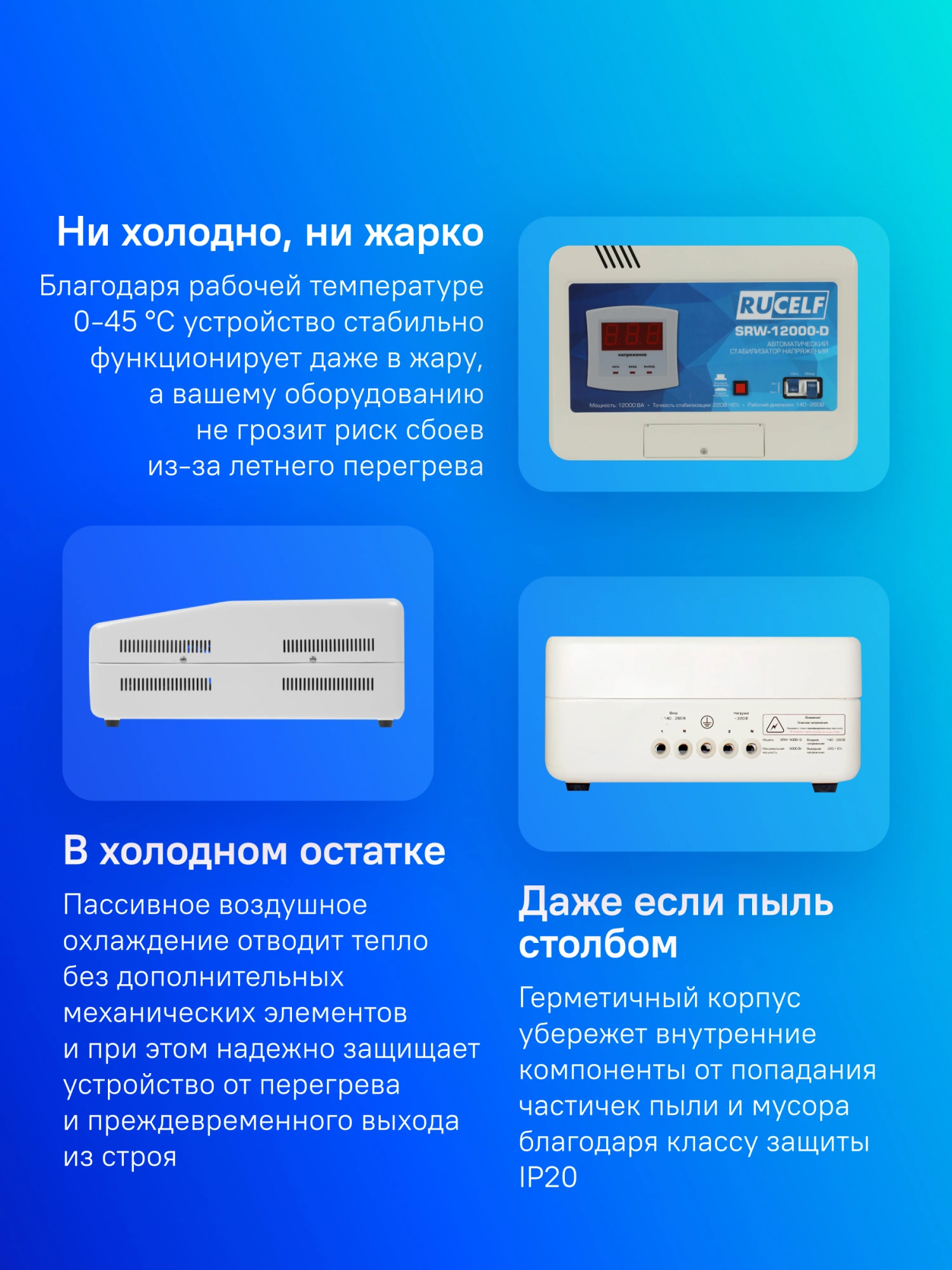 Стабилизатор напряжения Rucelf SRW-12000-D 12кВА однофазный белый
