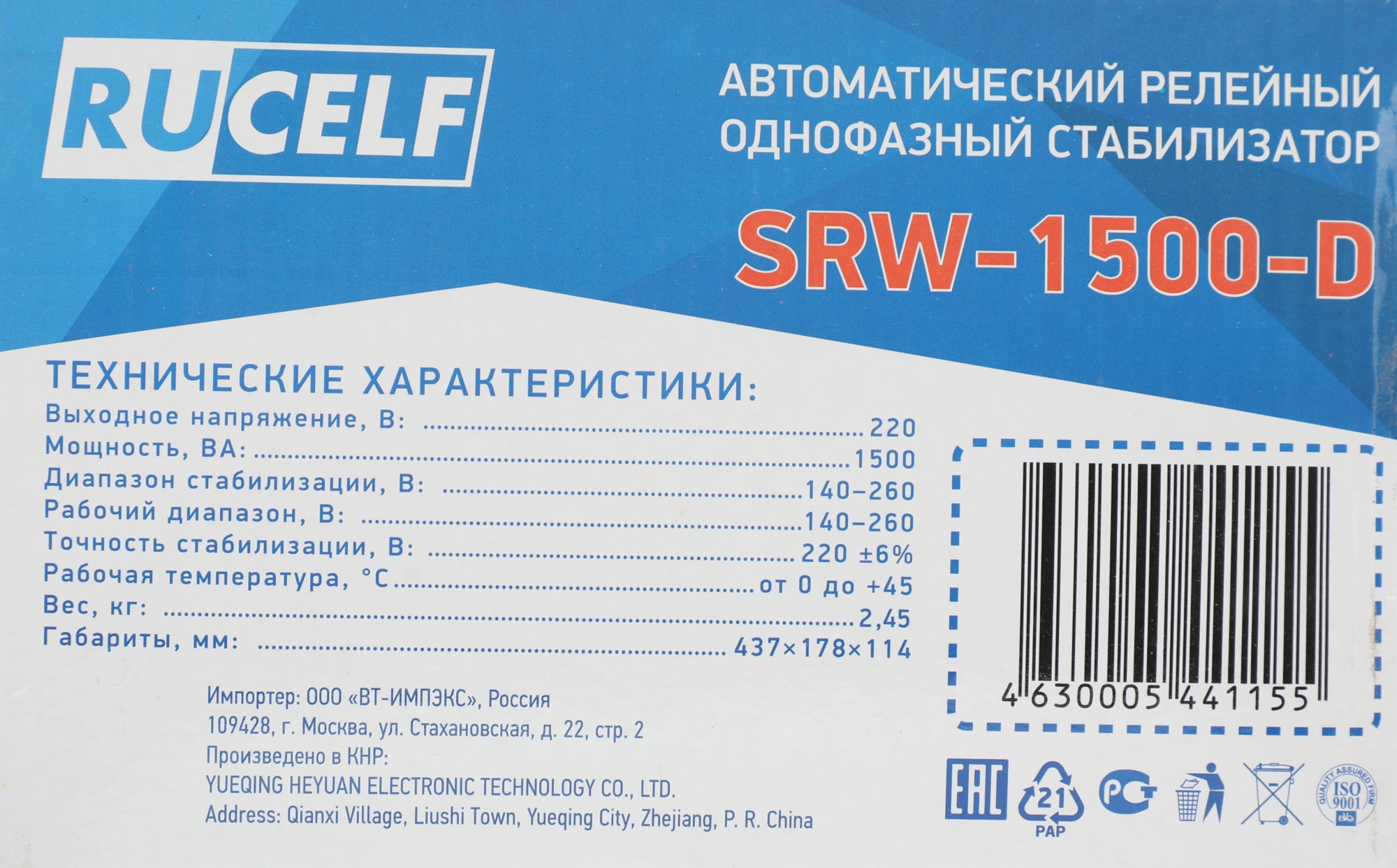 Стабилизатор напряжения Rucelf SRW-1500-D 1.5кВА однофазный белый