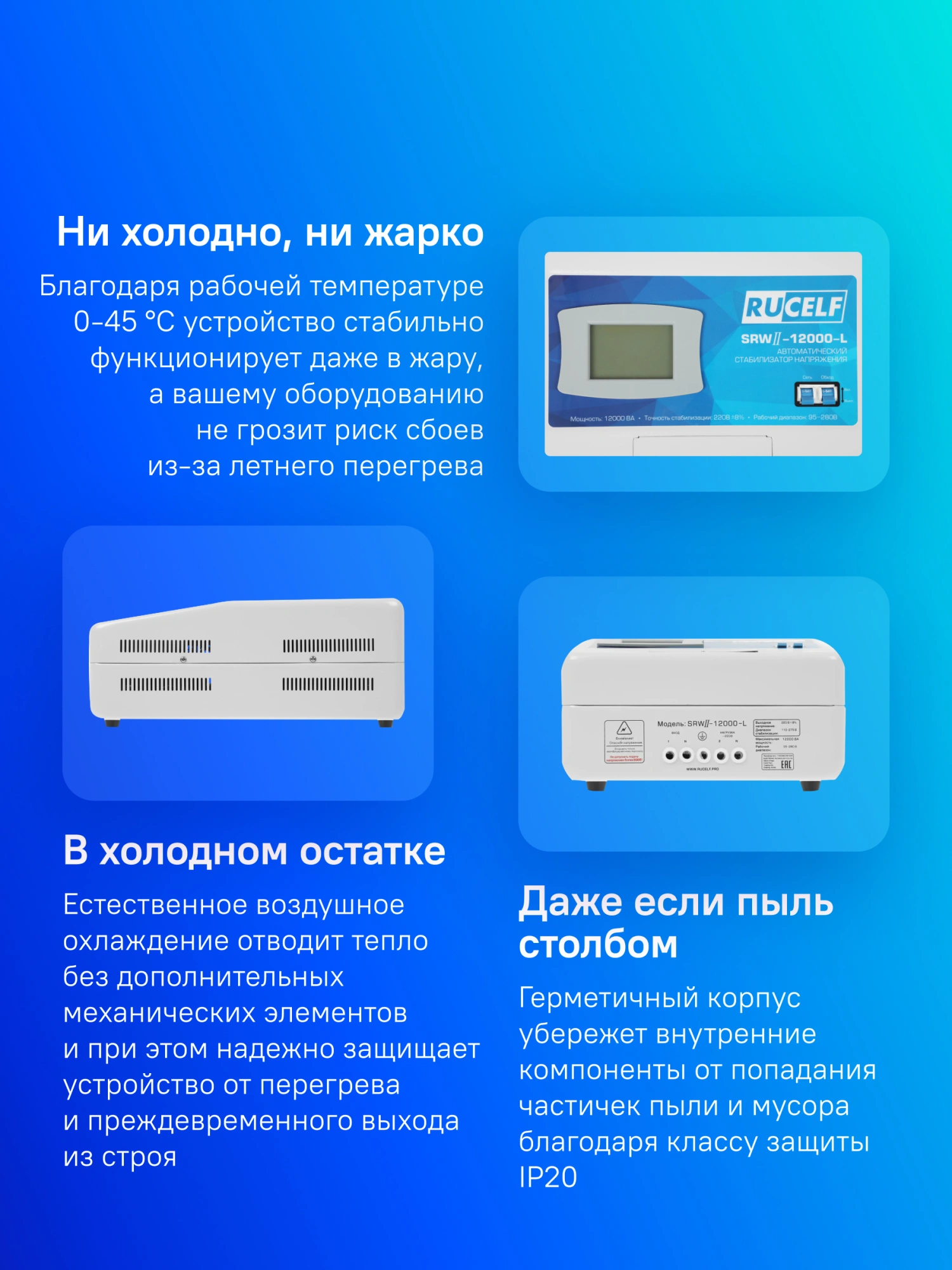 Стабилизатор напряжения Rucelf SRW.II-12000-L 12кВА однофазный белый (SRWII-12000-L)