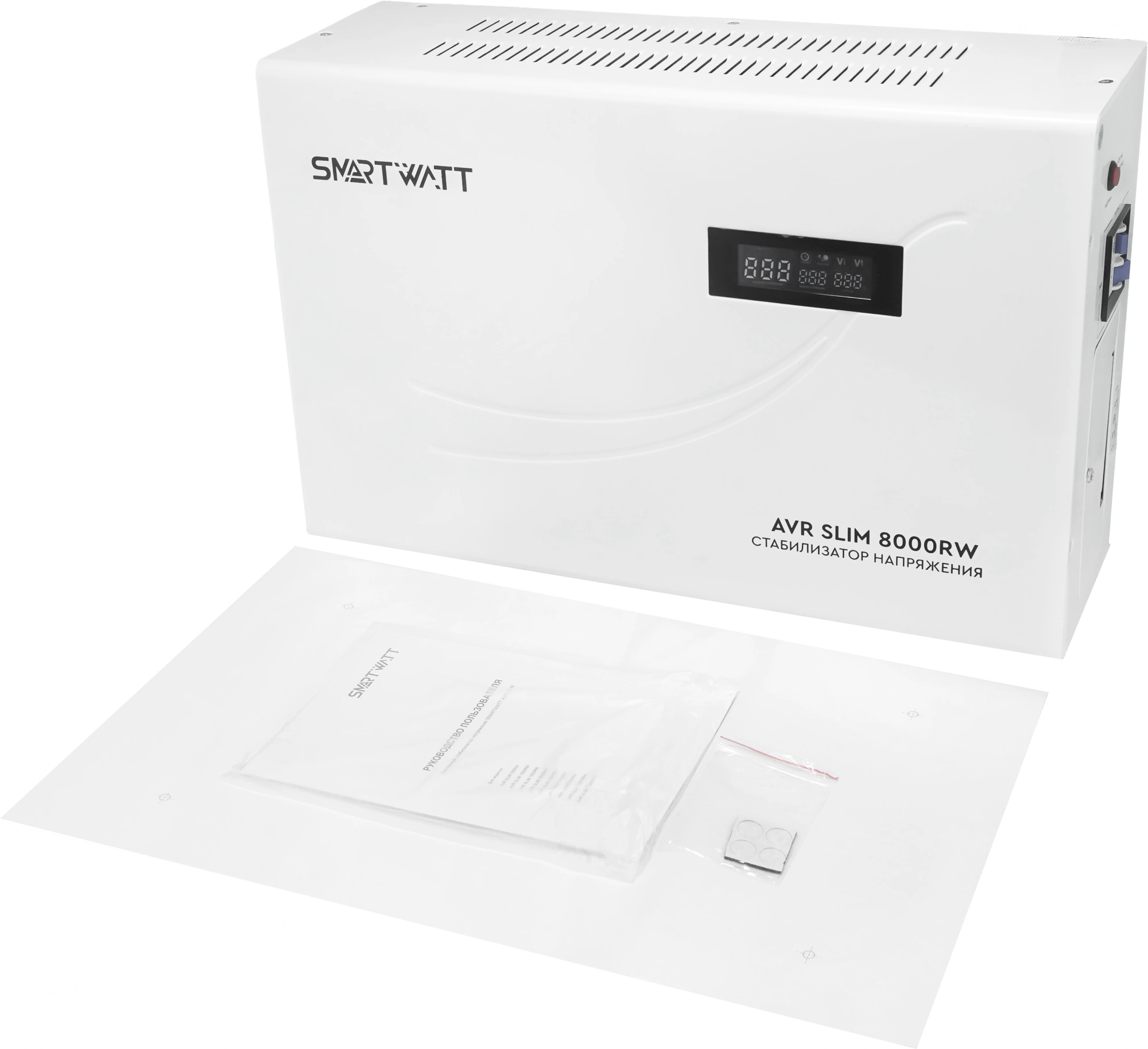 стабилизация напряжения от 100В, компактный плоский корпус, релейное переключение при помощи микропроцессора, функция «ZeroCross», задержка на включения, встроенный байпас, расширенный дисплей индикации, возможность напольного и настенного размещения