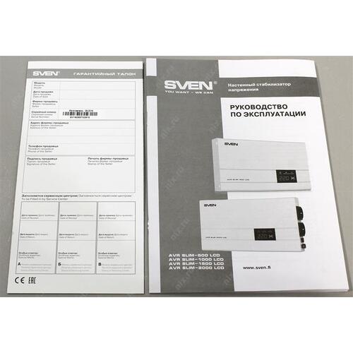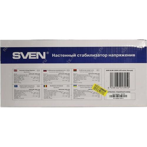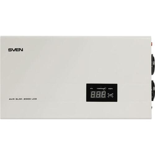 Стабилизатор настенный SVEN <AVR Slim-2000 LCD White> (вх.140-260V, вых.198-242V, 1200W, 2 розетки Euro)