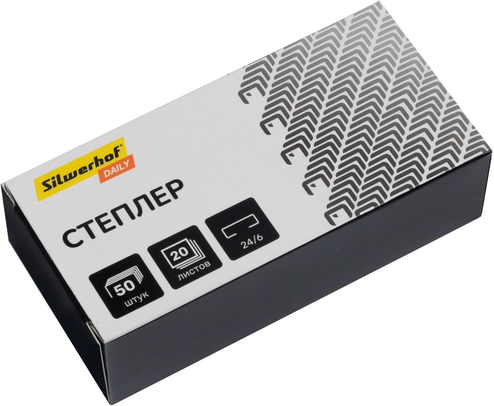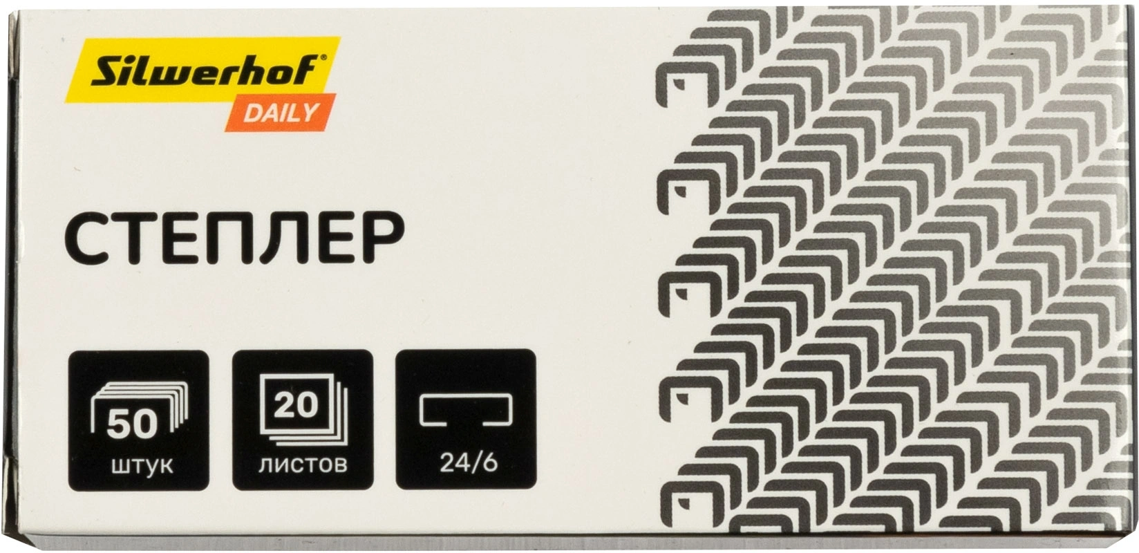 Степлер Silwerhof Daily 24/ 6 (20листов) черный 50скоб пластик закрытый коробка (продается кратно 12 шт.)