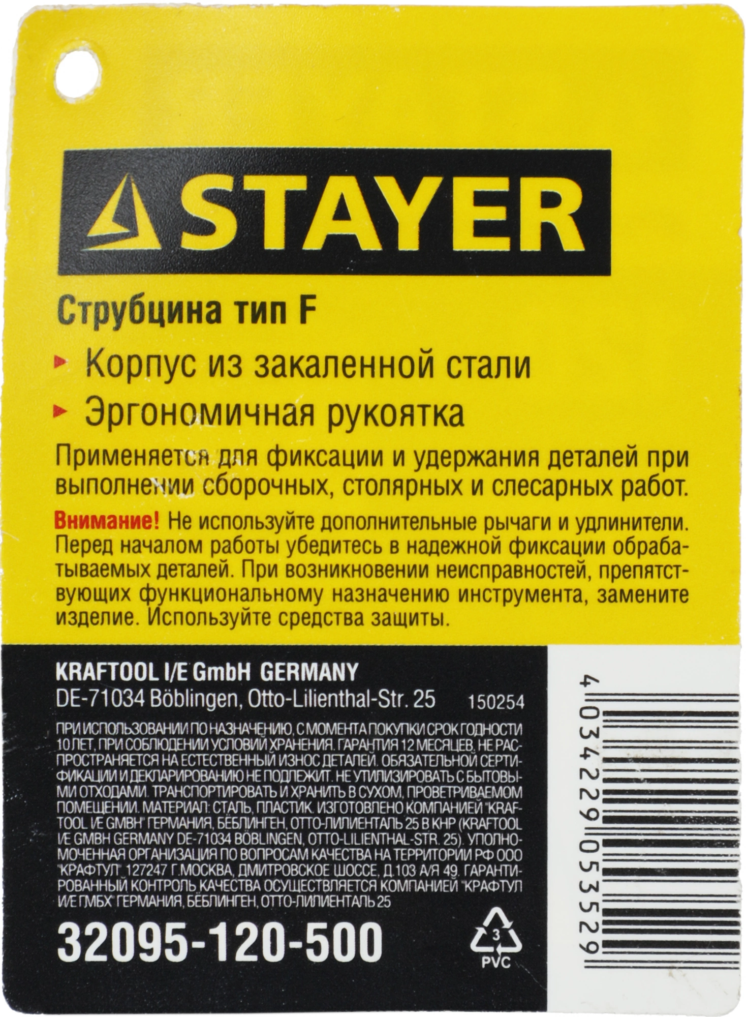 Струбцины Stayer - надежный инструмент для фиксации и удержания различных деталей при выполнении сборочных, столярных и слесарных работ. Ходовой винт с трапециевидной резьбой для передачи высокого крутящего момента. Корпус из высокопрочного чугуна. Толщина рейки 5 мм, ширина 15 мм.