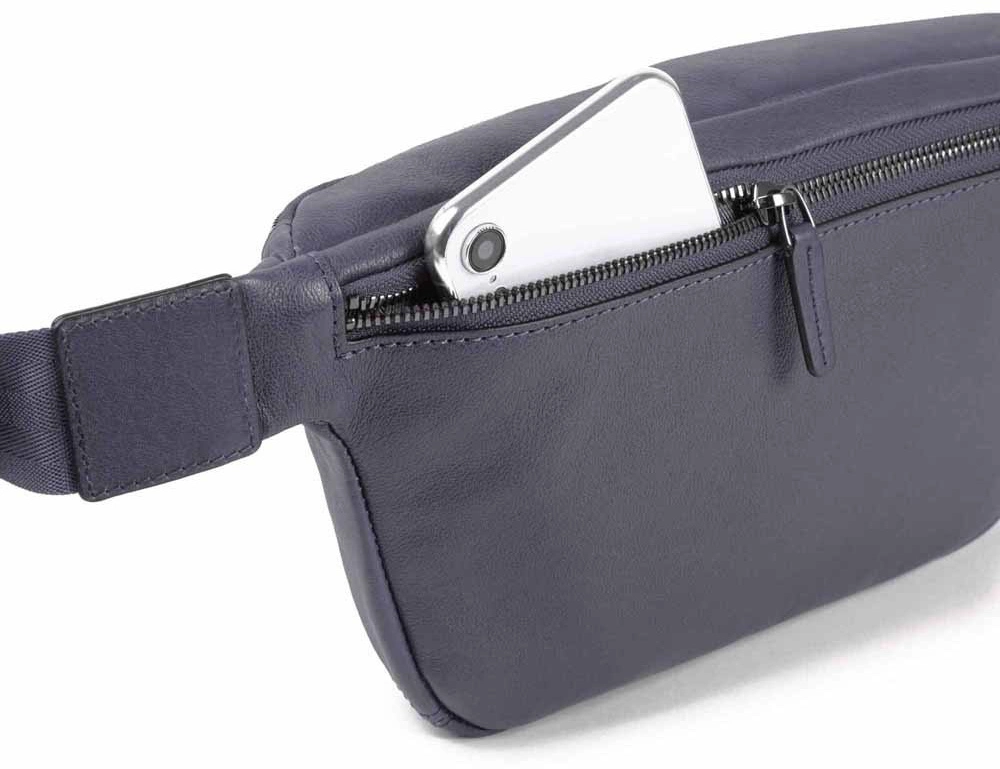 Выполнена из мелкозернистой телячьей кожи с черной окантовкой. Имеет одно отделение, внешние карманы и внутренний отсек для телефона. Сумку можно носить, как на поясе, так и через плечо. Несмотря на компактные размеры, сумка достаточно вместительна и имеет отсек для планшета Ipad mini.