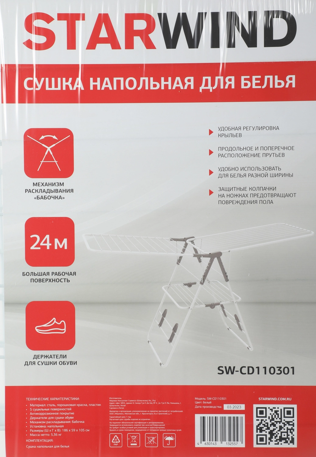 Сушка для белья напольная Starwind SW-CD110301 полез.поверх.:24м белый