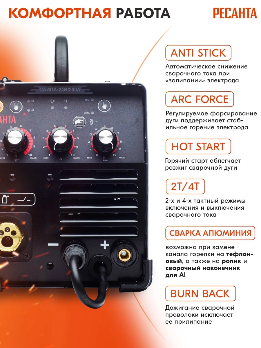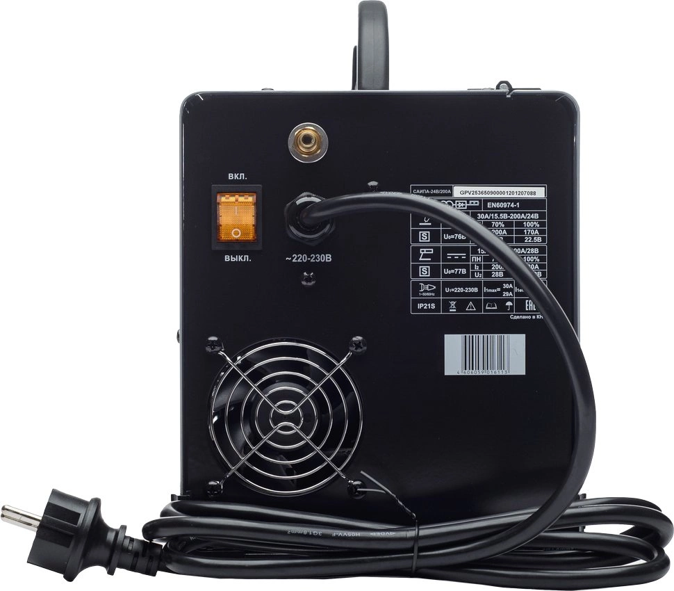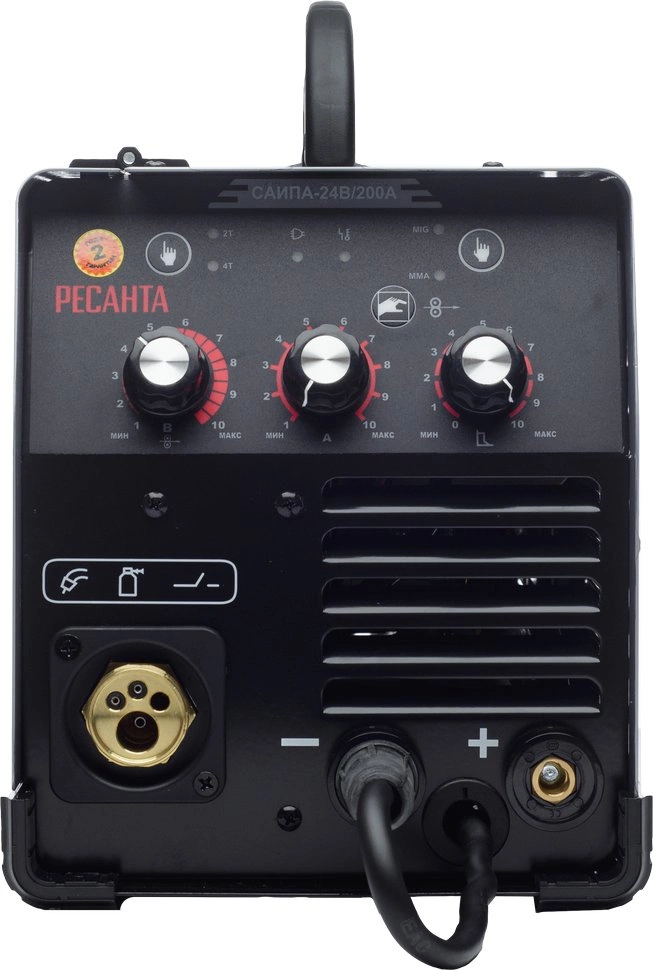 Сварочный аппарат, кабель с горелкой, кабель заземления, наконечники, паспорт, упаковка.