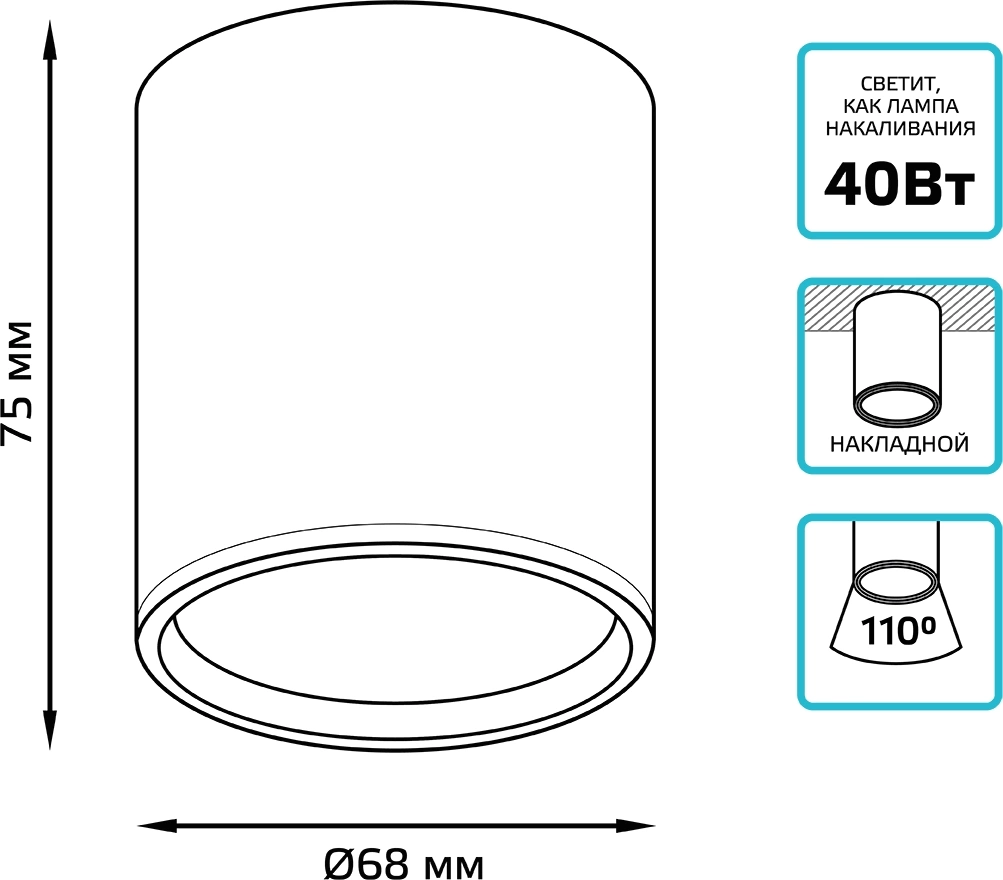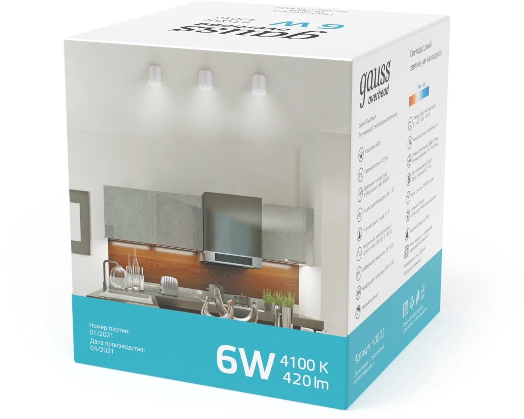Светильник Gauss Overhead потолоч. 6Вт 4100K цв.св.:белый нейтральный белый (HD022)