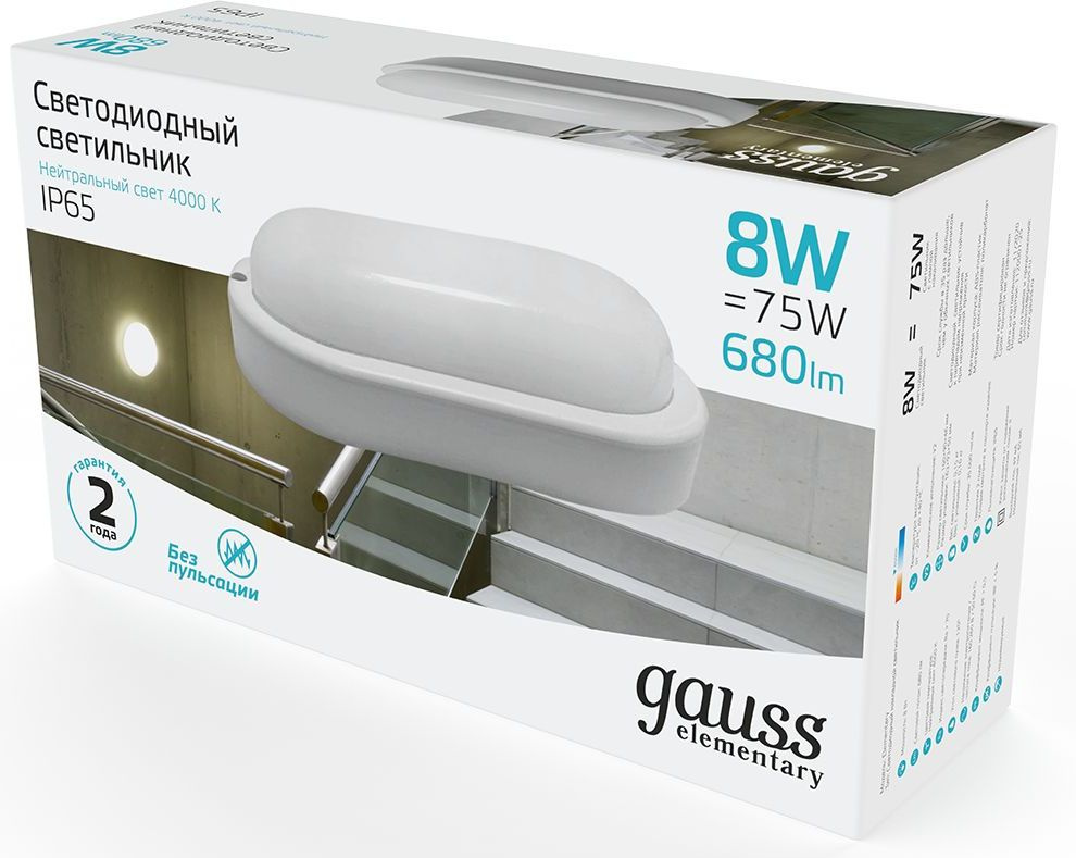Светильник Gauss ЖКХ 161411208 8Вт 4000K белый опал