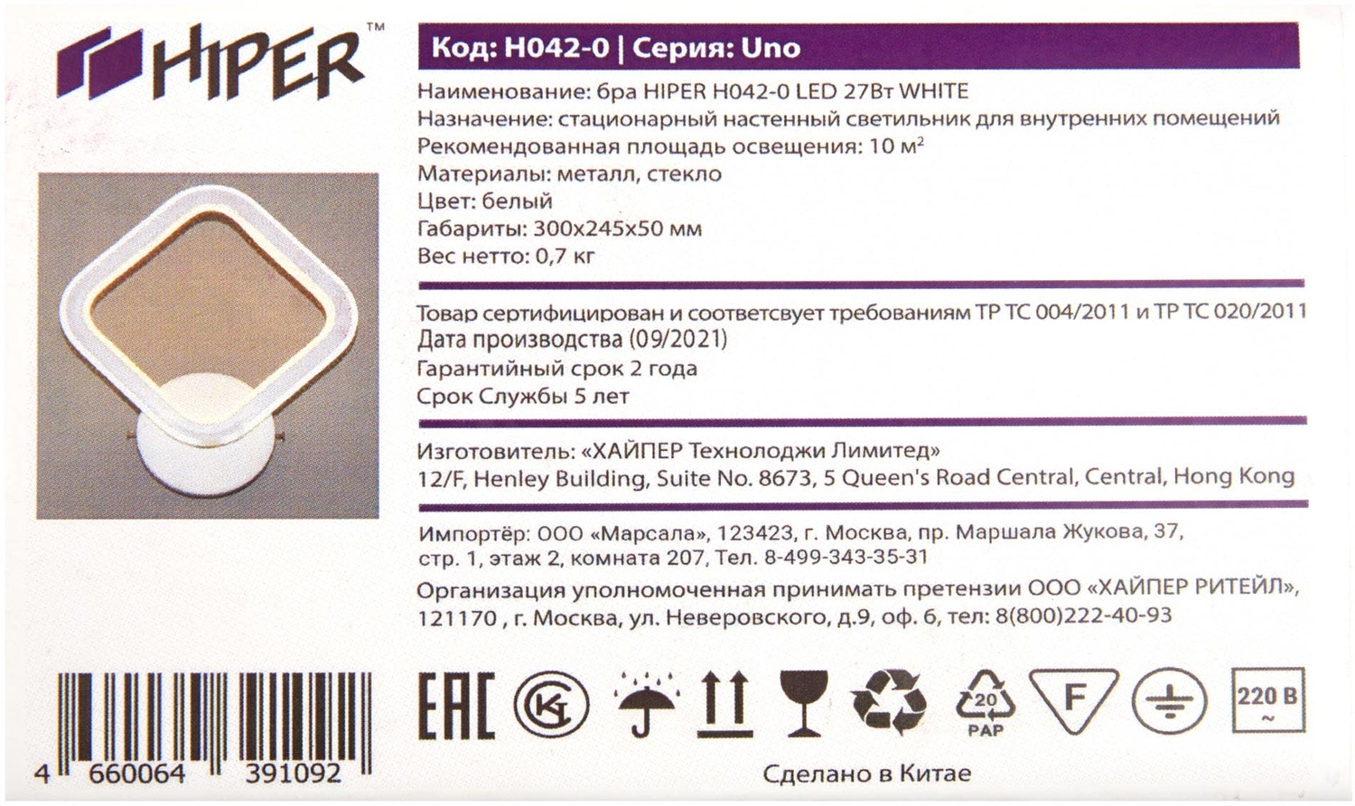 Светильник Hiper Uno H042-0 27Вт 4000K цв.св.:белый нейтральный белый