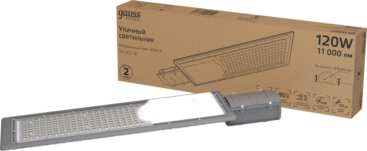 Уличные консольные светодиодные светильники Gauss модели Avenue предназначены для наружного освещения дворов, парковых аллей, прогулочных дорожек, придомовых территорий, автостоянок, площадей, улиц и дорог с малой и средней интенсивностью движения.