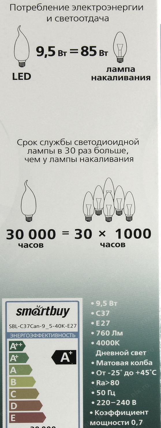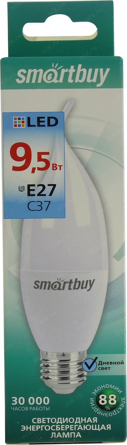Светодиодная лампа Smartbuy < SBL-C37Can-9.5-40K-E27> (E27, 760 люмен, 4000К, 9.5Вт, 220-240В)