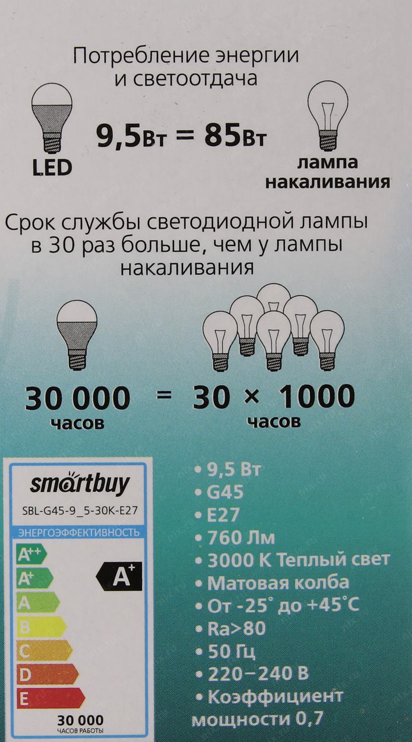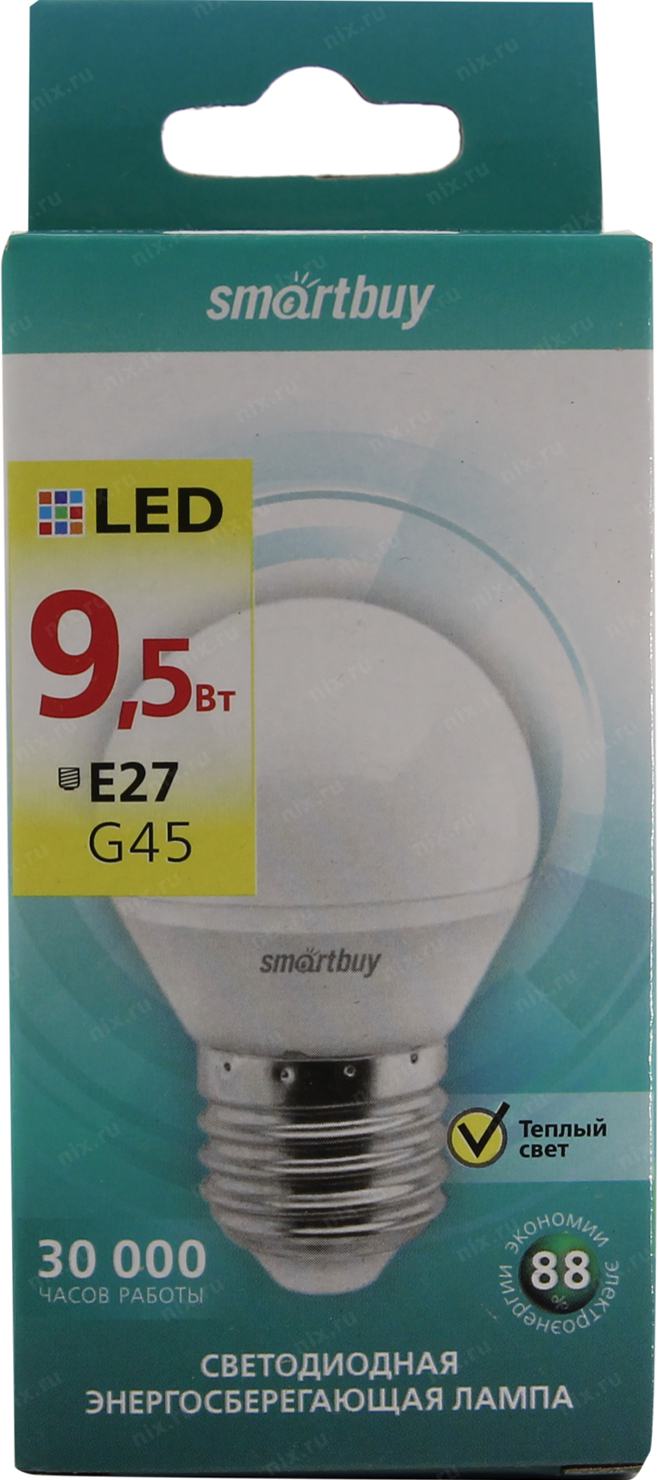 Светодиодная лампа Smartbuy < SBL-G45-9_5-30K-E27> (E27, 760 люмен, 3000К, 9.5Вт, 220-240В)