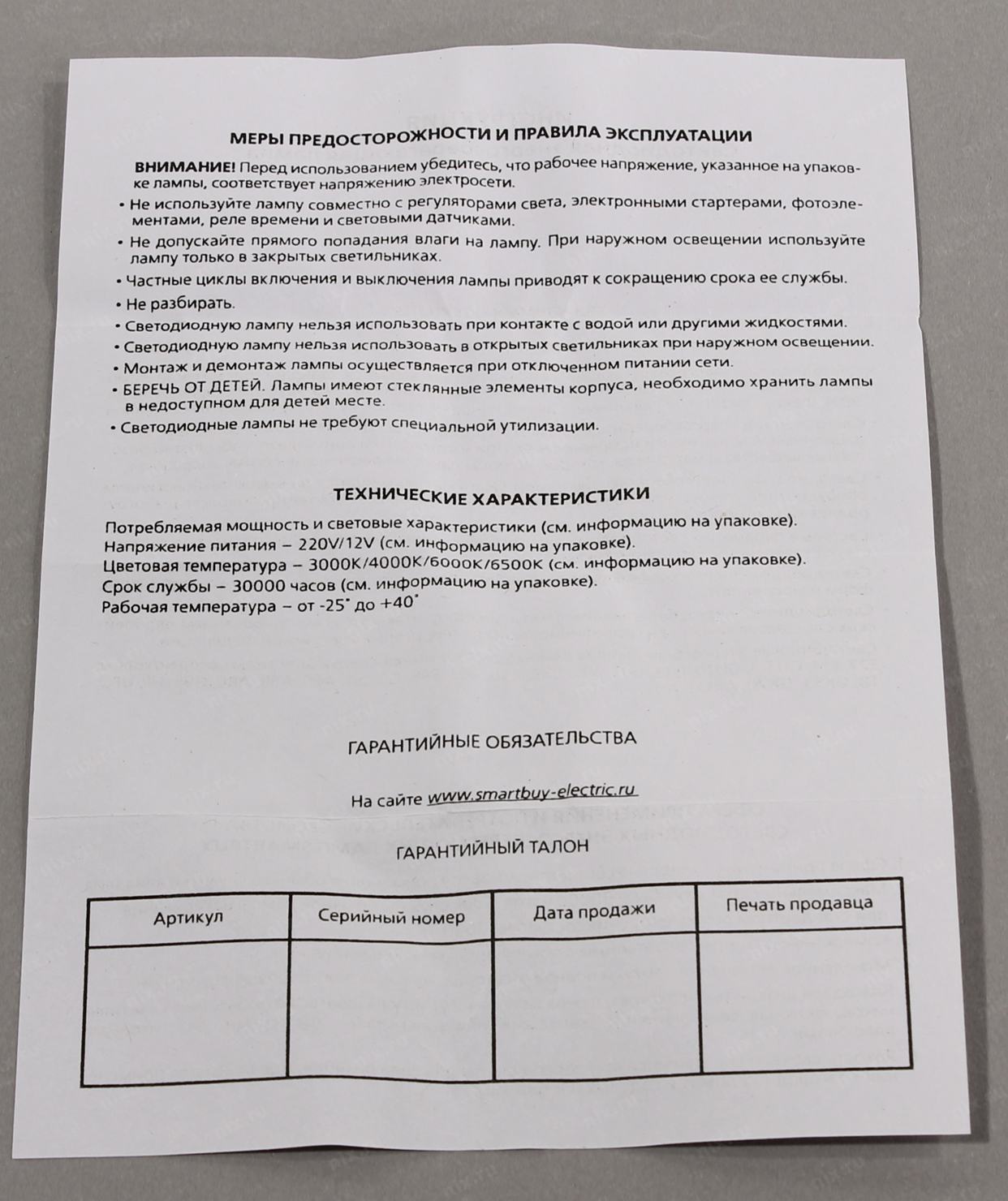 Некоторые лампы обладают плавающими характеристиками и могут незначительно поменять характеристики с очередной поставкой. Характеристики и фотографии, приведенные нами, имеют справочный характер и могут отличаться при получении. Просьба проверять соответствие товара при выдаче.