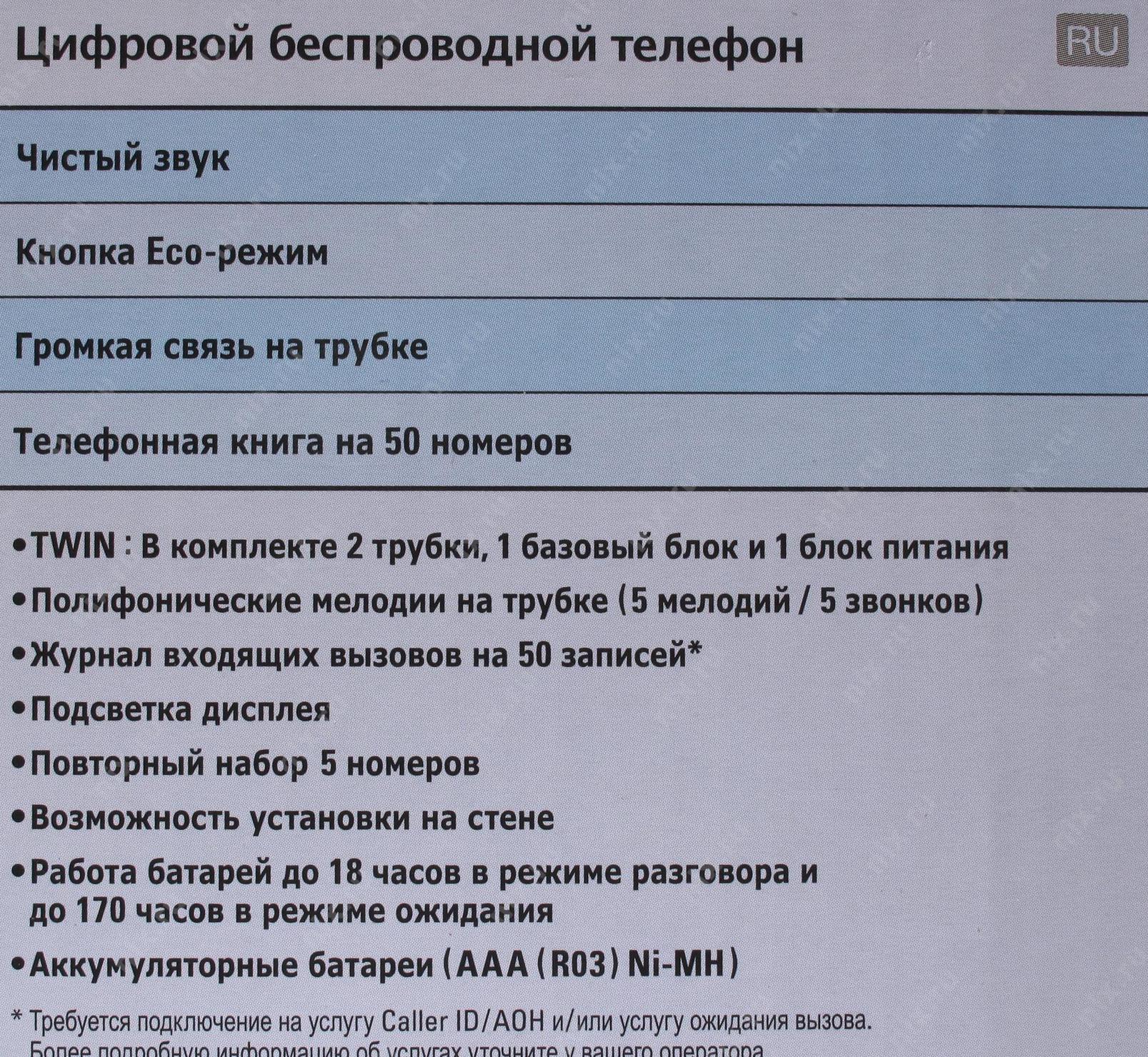 Телефон Panasonic KX-TG2512RU2 (Доп трубка в комплекте, АОН, Caller ID, спикерфон, полифония)