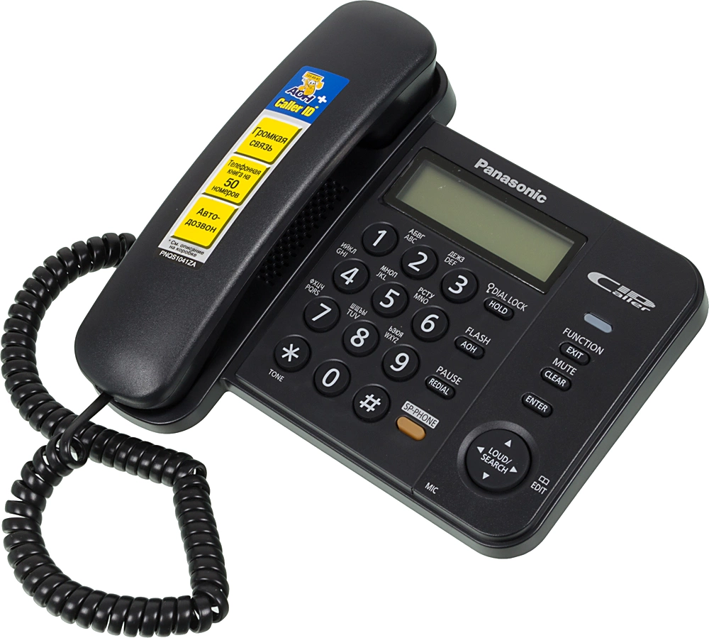 Телефон Panasonic KX-TS2358RUB (черный) (АОН,Caller ID,ЖКД,блокировка набора,выключение микрофона,кнопка "пауза")