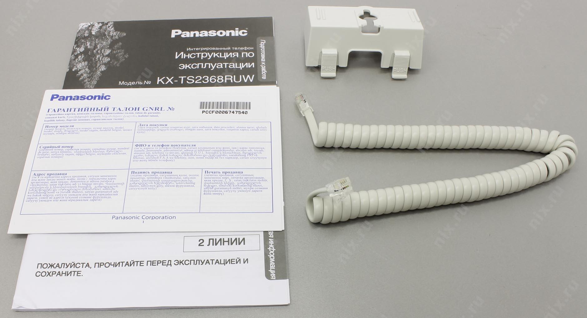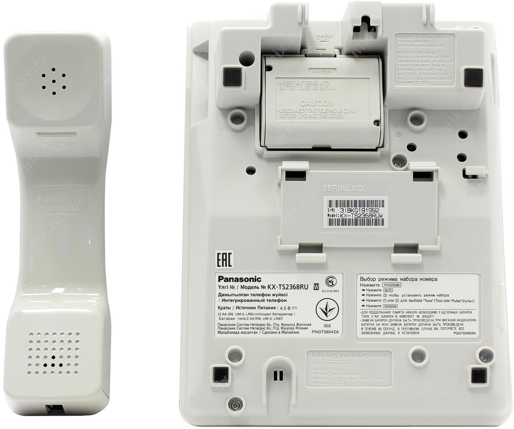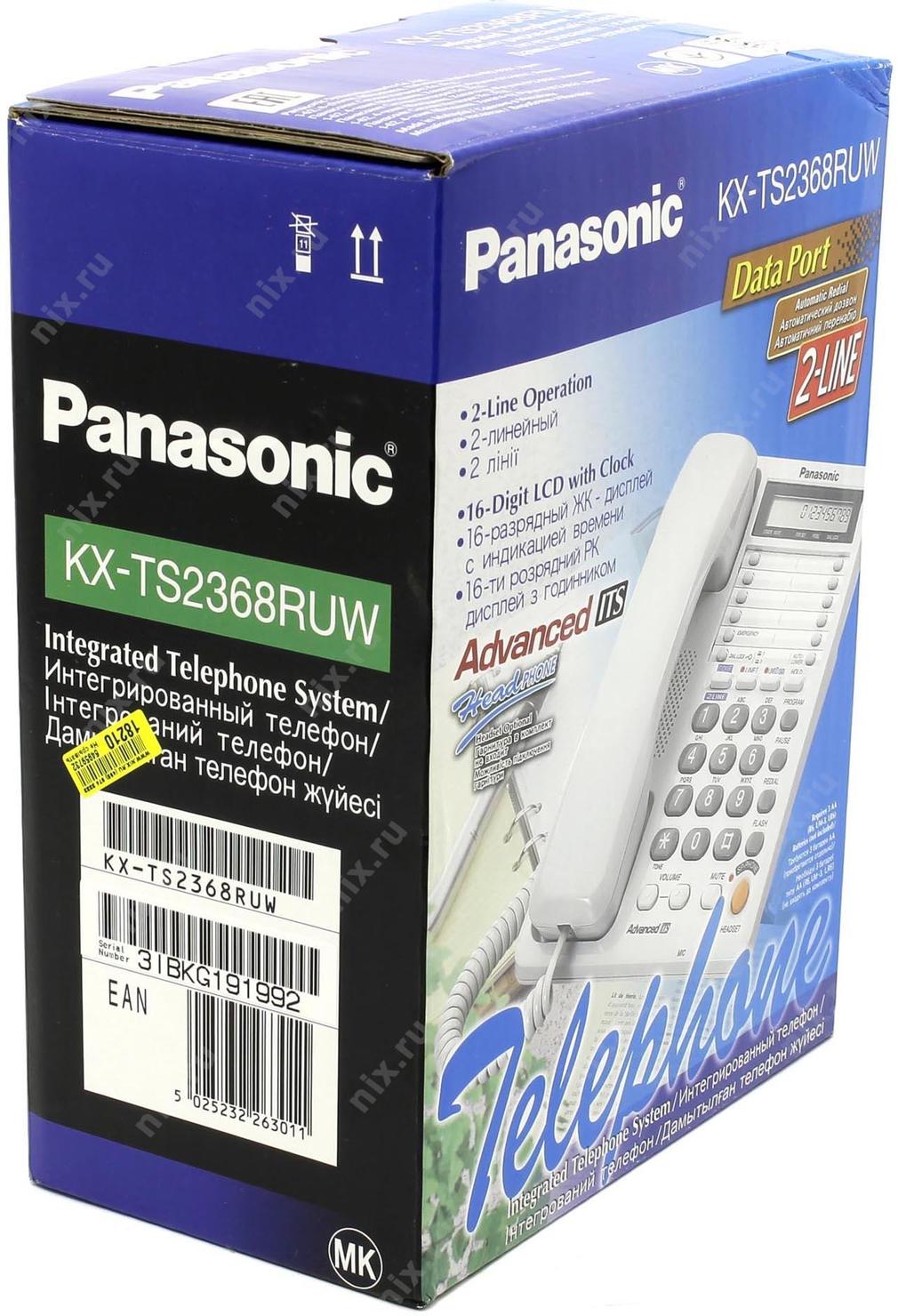 Телефон Panasonic KX-TS2368RUW (белый) (2 линии, конференц-связь, спикер., 30 номеров памяти, ЖКД, Flash, часы )
