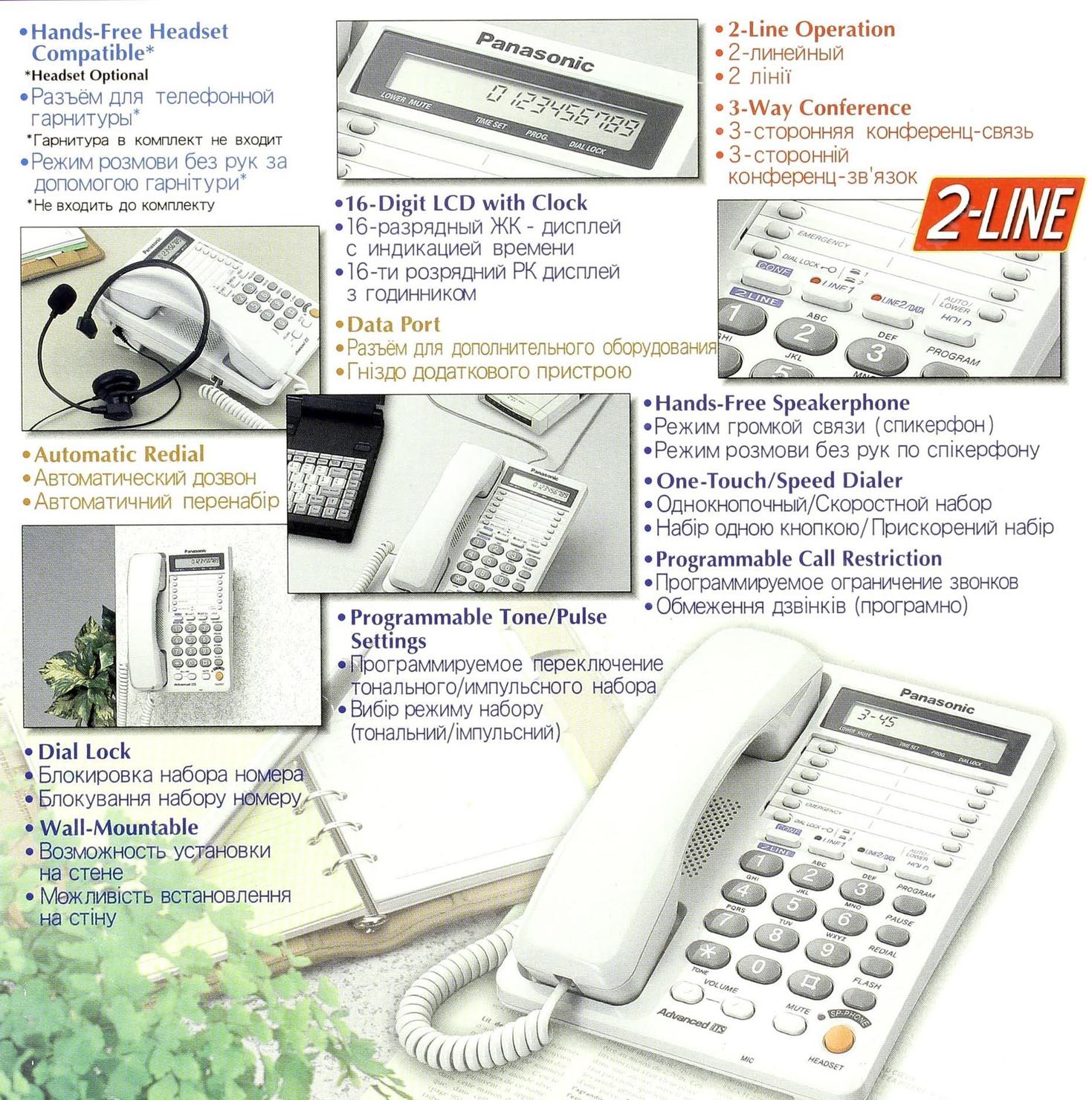 Трёхсторонняя конференц-связь, отдельный звонок для каждой линии, блокировка набора номера, ограничение вызовов, отключение микрофона, электронный регулятор громкости, программируемая кнопка "флэш" (от 80 до 700 мс), 3 уровня громкости звонка