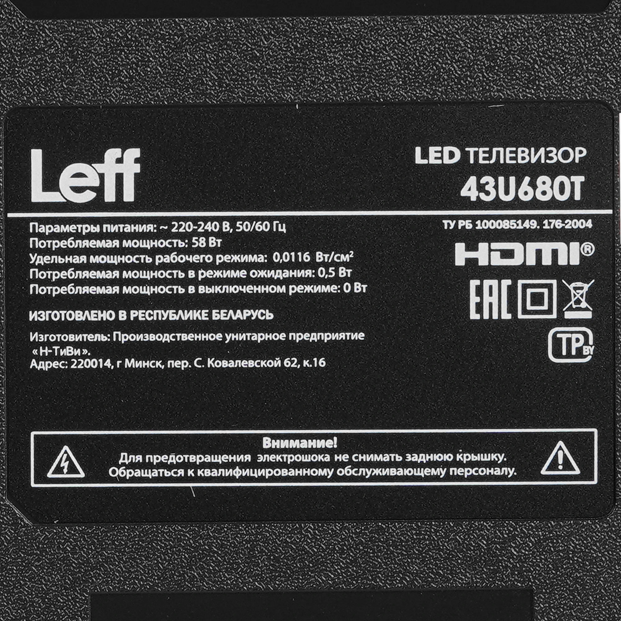 Телевизор LCD 43" 4K UHD SALUT SMART 43U680T LEFF