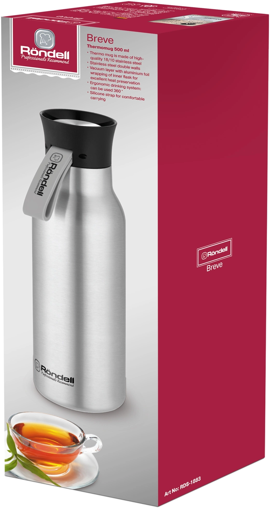Термокружка для напитков Rondell Breve RDS-1883 0.5л. стальной матовый картонная коробка