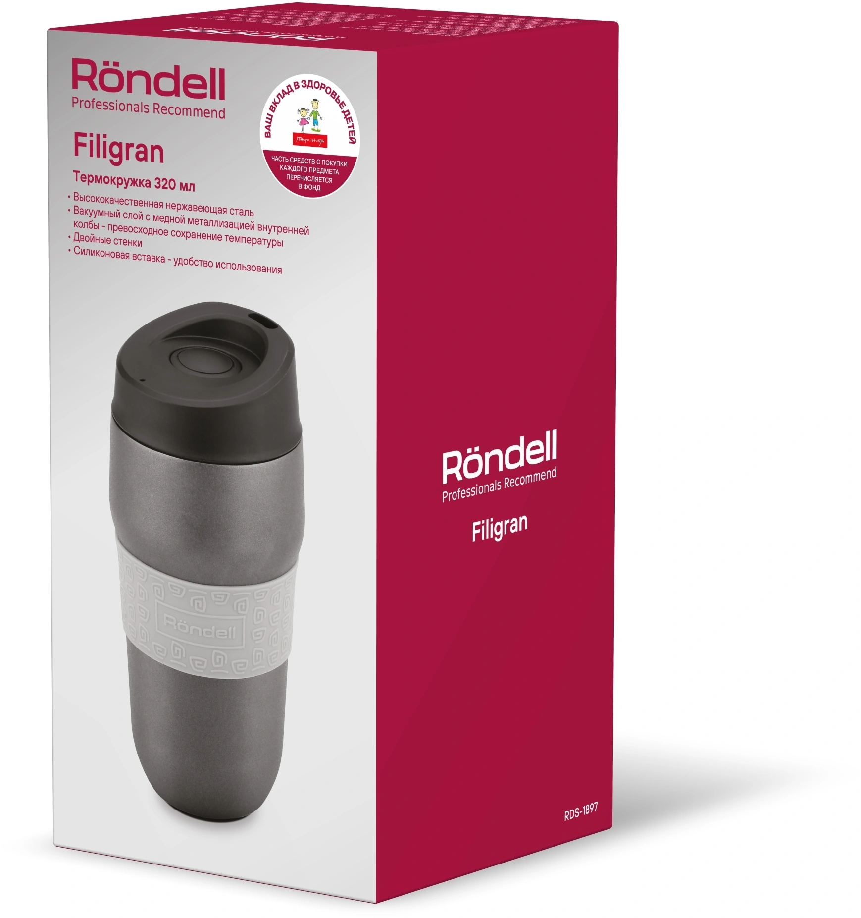 Термокружка для напитков Rondell Filigran RDS-1897 0.32л. темно-серый картонная коробка
