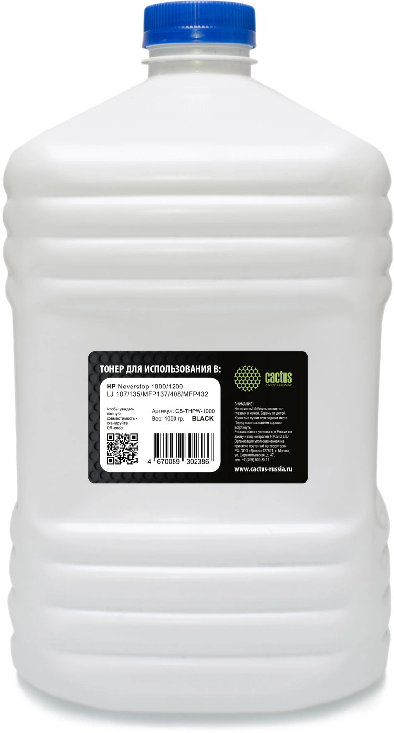 Тонер Cactus CS-THPW-1000 черный флакон 1000гр. для принтера HP W1106; Xerox 106R01487