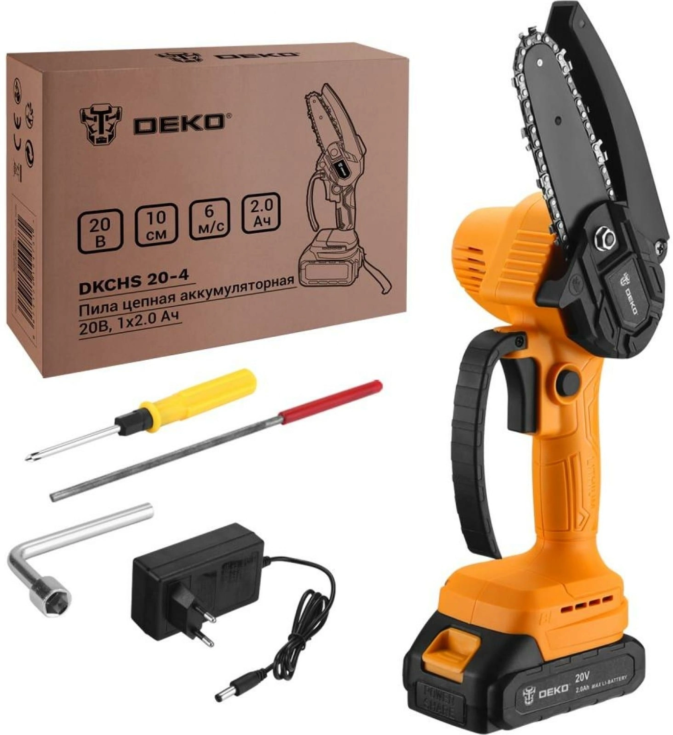 Цепная пила Deko DKCHS 20-4 аккум. дл.шины:4"(10cm) 2аккум. 2Ач ЗУ (063-4308)
