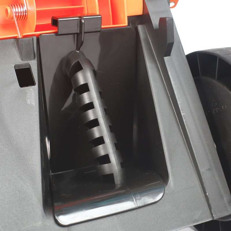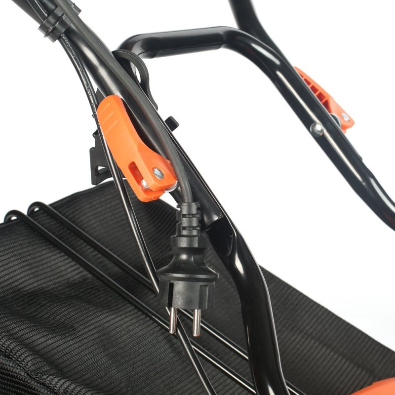 Газонокосилка, Верхняя часть рукоятки, Нижняя часть рукоятки, Травосборник, Фиксатор рукоятки - 4шт., Подвес для кабеля, Мульчирующая заглушка, Инструкция по эксплуатации