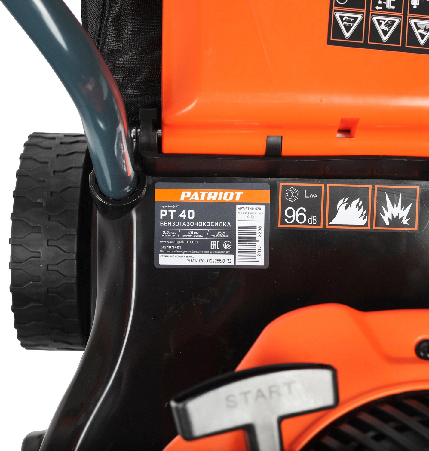 Газонокосилка PATRIOT PT 40 Газонокосилка бензиновая [512109401] ( 130сс, 3,5л.с., 40см, 35л )