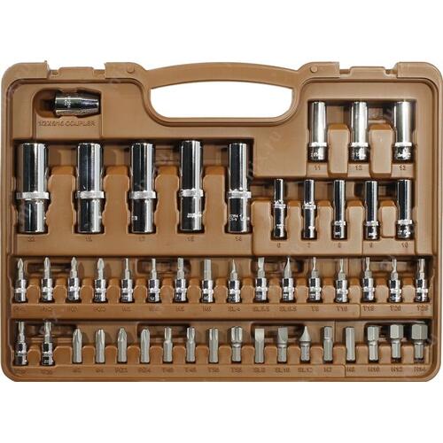 Удлинитель для торцевых головок (квадрат 1/2" M -> F), Удлинитель для торцевых головок (квадрат 1/4" M -> F), Кардан (квадрат 1/2" M -> F), Кардан (квадрат 1/4" M -> F), Переходник для торцевых головок (квадрат 3/8" F -> квадрат 1/2" M), Вороток Т-образный для торцевых головок 1/2", Вороток Т-образный для торцевых головок 1/4", Отвертка-вороток для торцевых головок (квадрат 1/4" M), Ключ трещотка для торцевых головок 1/4", Ключ трещотка для торцевых головок 1/2", Торцевые головки 1/4", Торцевые головки 1/2", Адаптер для бит (квадрат 1/2" F -> шестигранник 5/16" F), Вставки (биты) 5/16", Биты под квадрат 1/4" (биты-насадки), Шестигранный ключ (Г-образный)