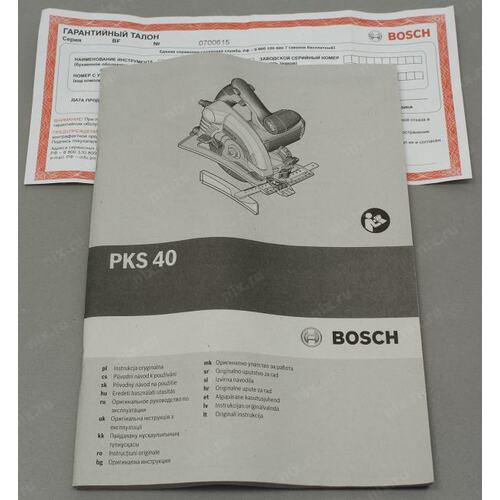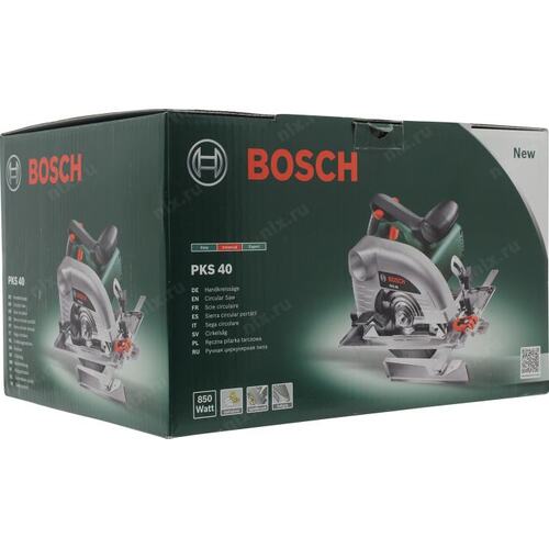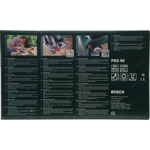Пила Bosch PKS 40 Ручная дисковая пила [06033C5000] (850 Вт , глубина пропила под углом 90°: 0-40 мм, глубина пропила под углом 45°: 0-26 мм. Направляющая пластина 120 х 260 мм, масса 2, | НИКС Екатеринбург