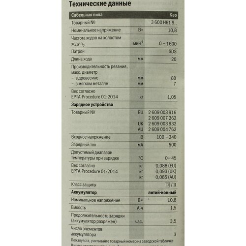 Аккумуляторная садовая сабельная пила Bosch KEO (1АКБ (встроенный) и ЗУ), 10,8 В, 1.3 А*ч, (0600861900) | НИКС Екатеринбург
