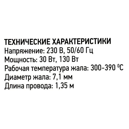 Длина кабеля: 1.35 метра; темпеатура жала 300 - 390 °C