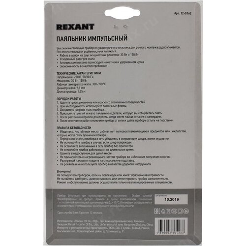 Паяльник Rexant 12-0162-1 импульсный 130Втмакс.t=450
