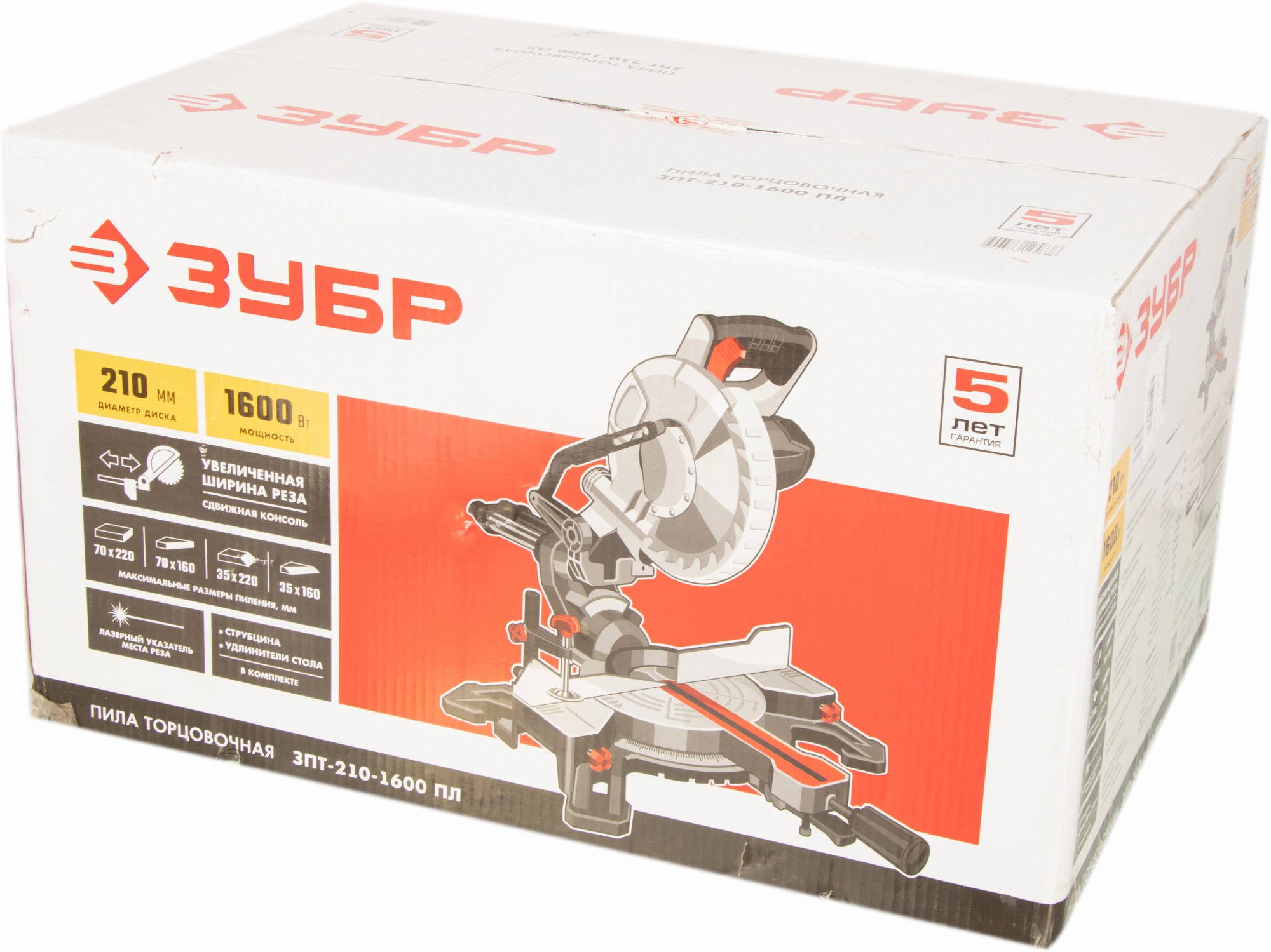 Торцовочная пила Зубр ЗПТ-210-1600 ПЛ 1600Вт 4500об/ мин d=210мм