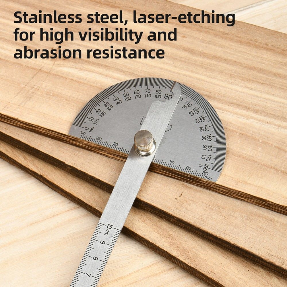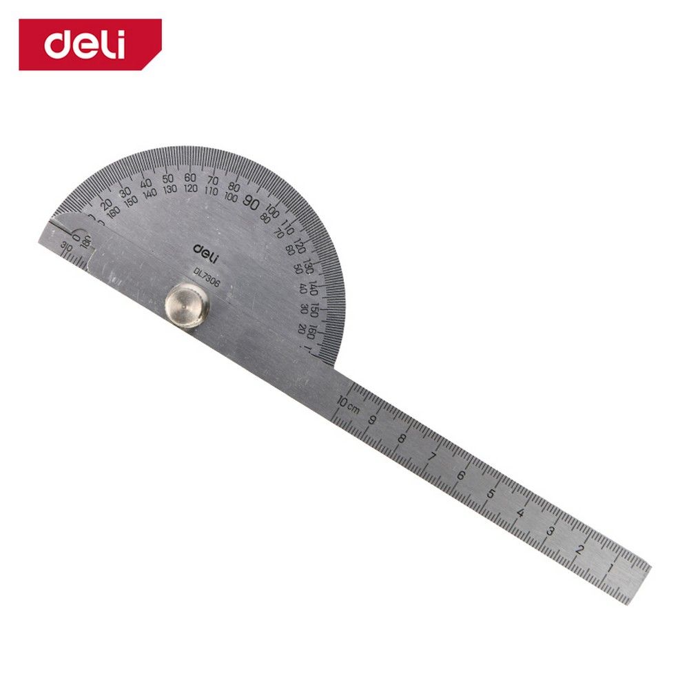 Транспортир переставной с линейкой Deli DL7306 150мм, диапазон 0-180 град., нержавеющая сталь