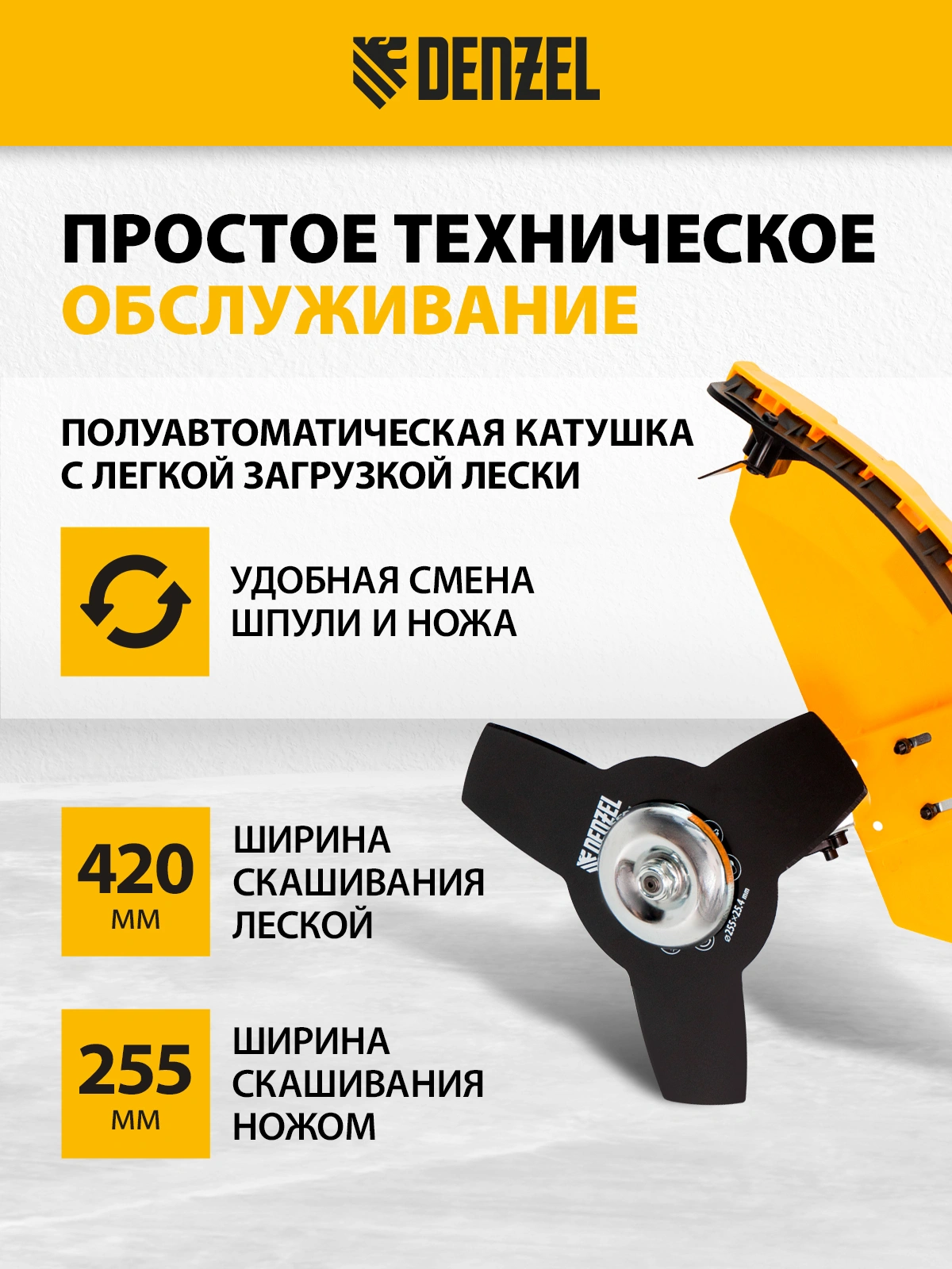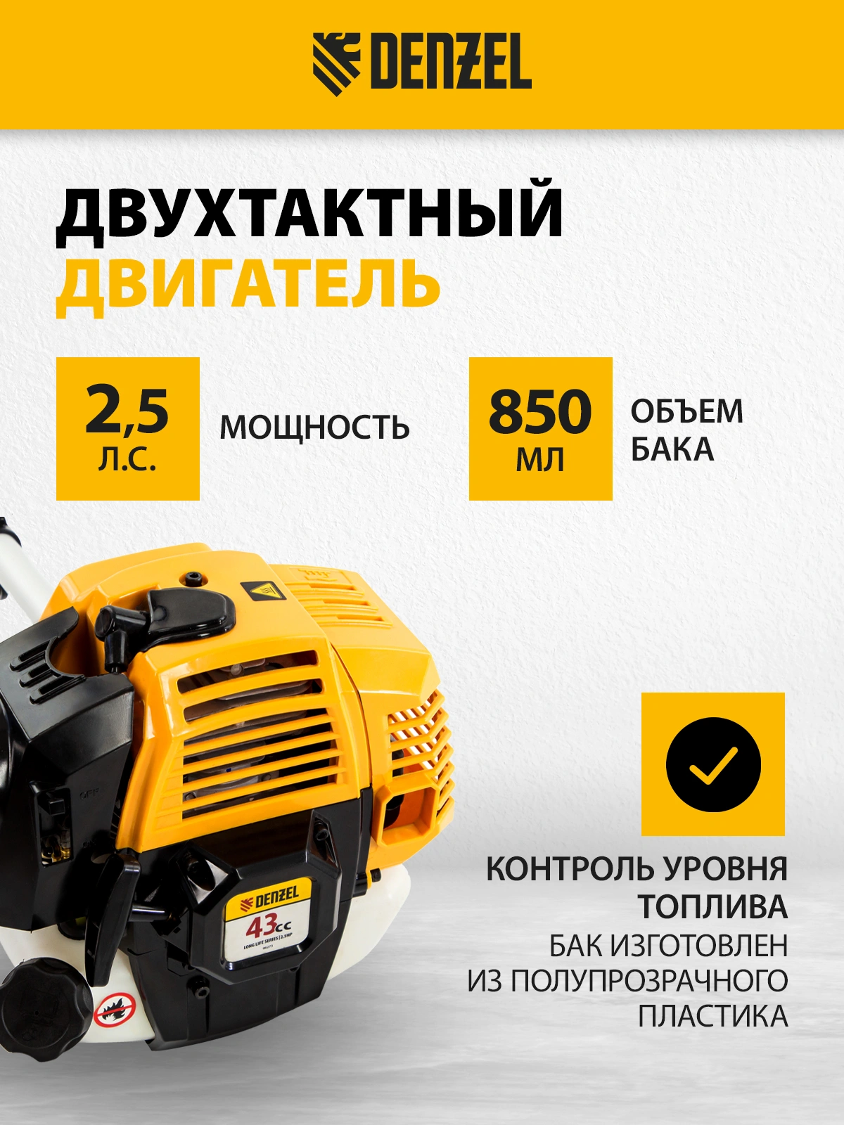Триммер бензиновый Denzel DR-43 2.5л.с. неразбор.штан. реж.эл.:леска/ нож 96273