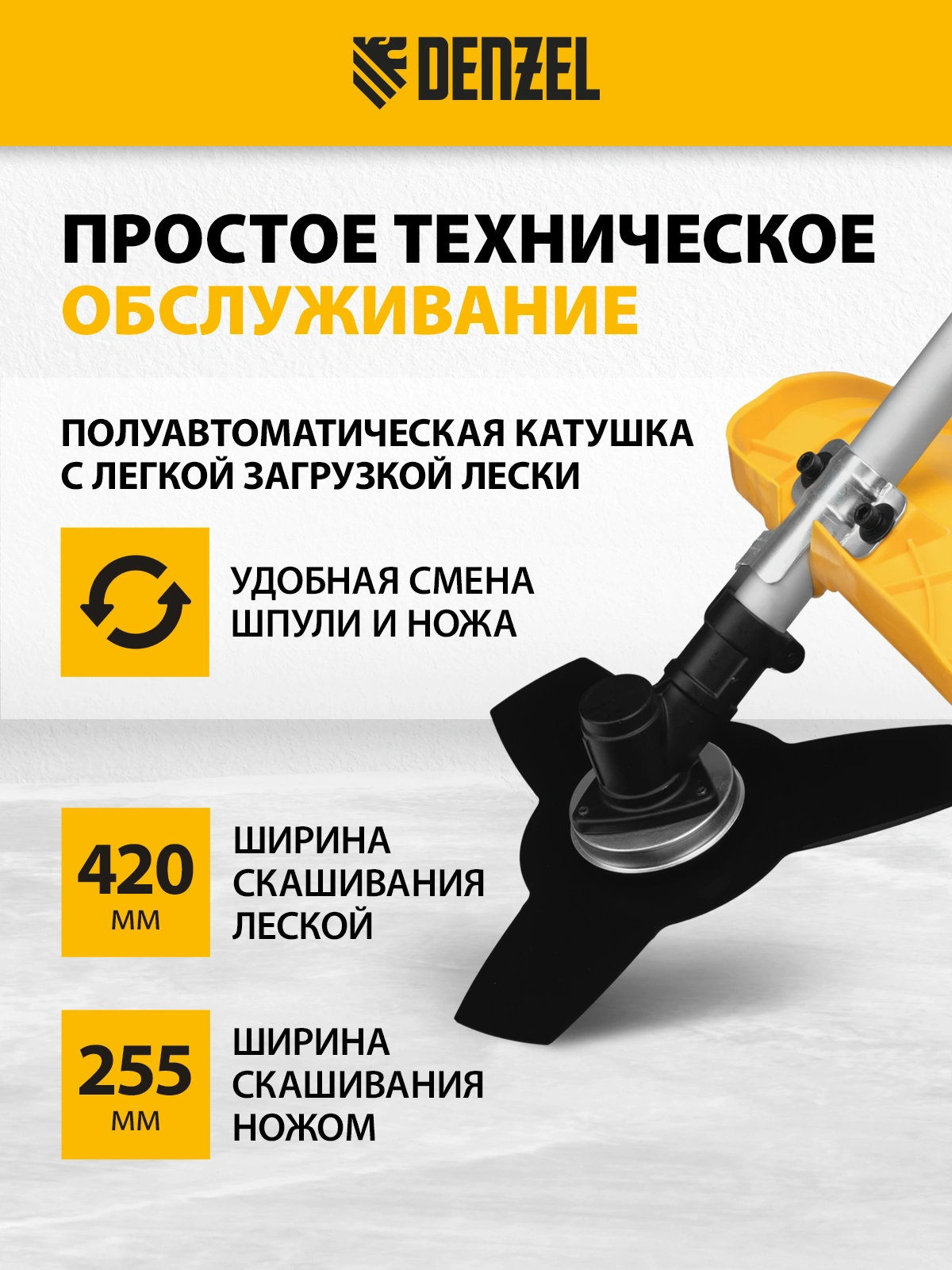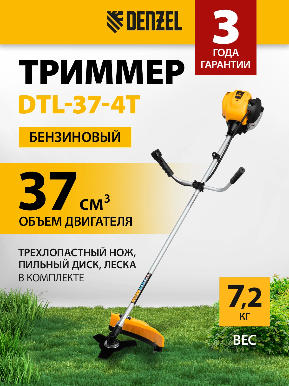 Триммер бензиновый Denzel DTL-37-4T 1.4л.с. неразбор.штан. реж.эл.:леска/ нож 96267