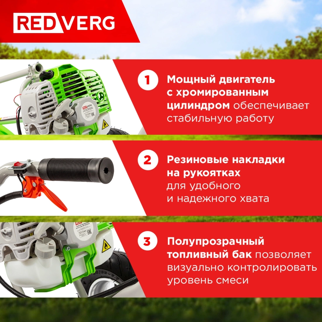 Триммер бензиновый RedVerg RD-GB252W 2300Вт 3л.с. неразбор.штан. реж.эл.:леска/ нож