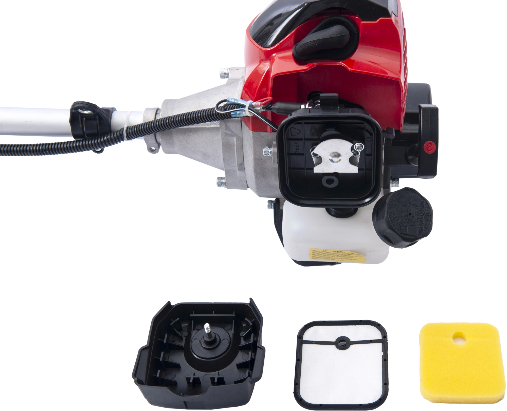 Оптимизированный редуктор с повышенной стойкостью к ударам позволяет легко справляться с любой растительностью. Усиленный металлический вал в сочетании с прямой штангой позволяет работать с большей мощностью. Оптимальный комплект рабочей оснастки подобран для любых условий кошения.