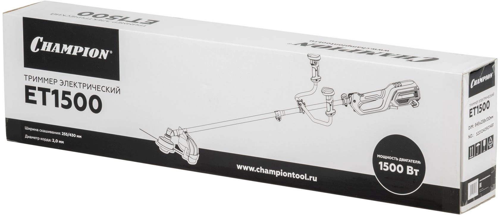 Триммер электрический Champion ET1500 1500Вт разбор.штан. реж.эл.:леска/ нож