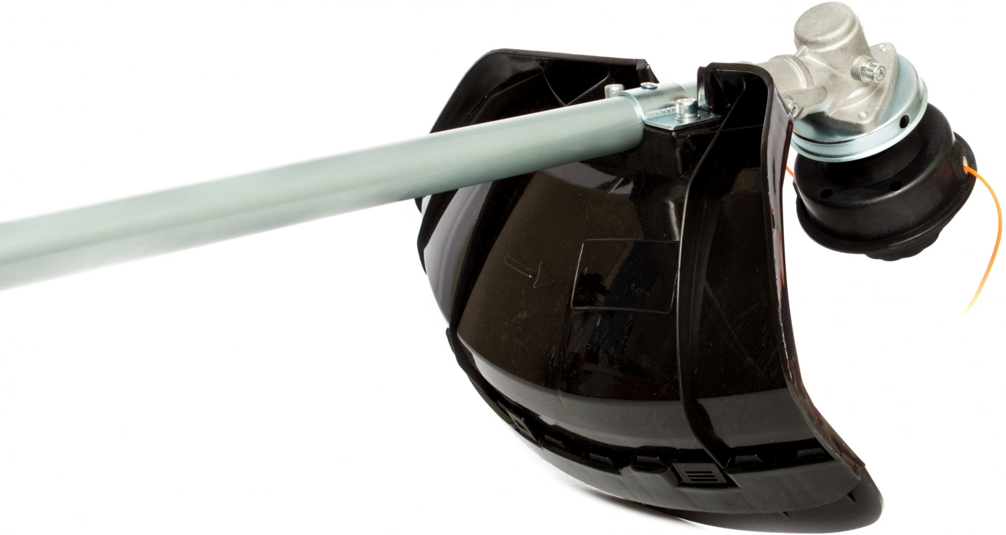 2 оснастки: леска и нож; Сбалансированная конструкция; Питание от бытовой сети - отсутствие токсичных выхлопов, низкий уровень шума; Защита двигателя от перегрева; Защита от случайного включения.