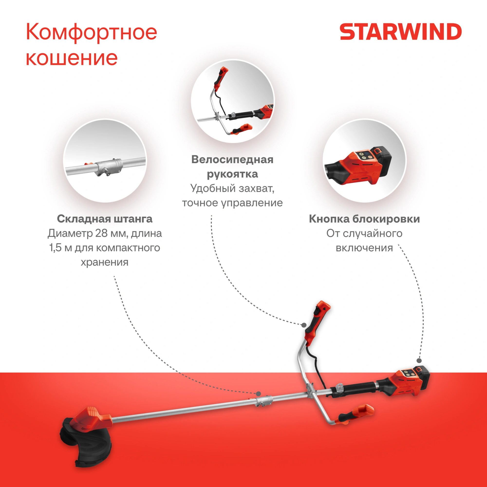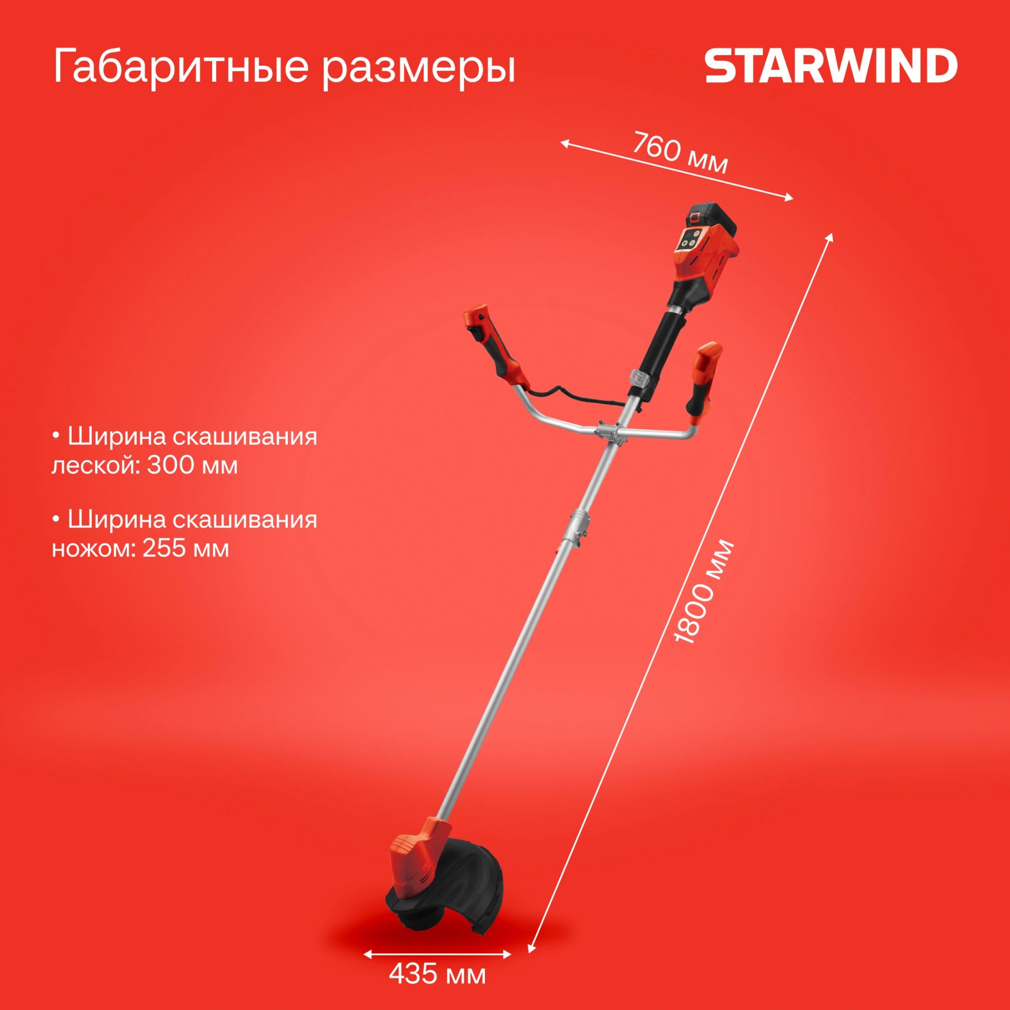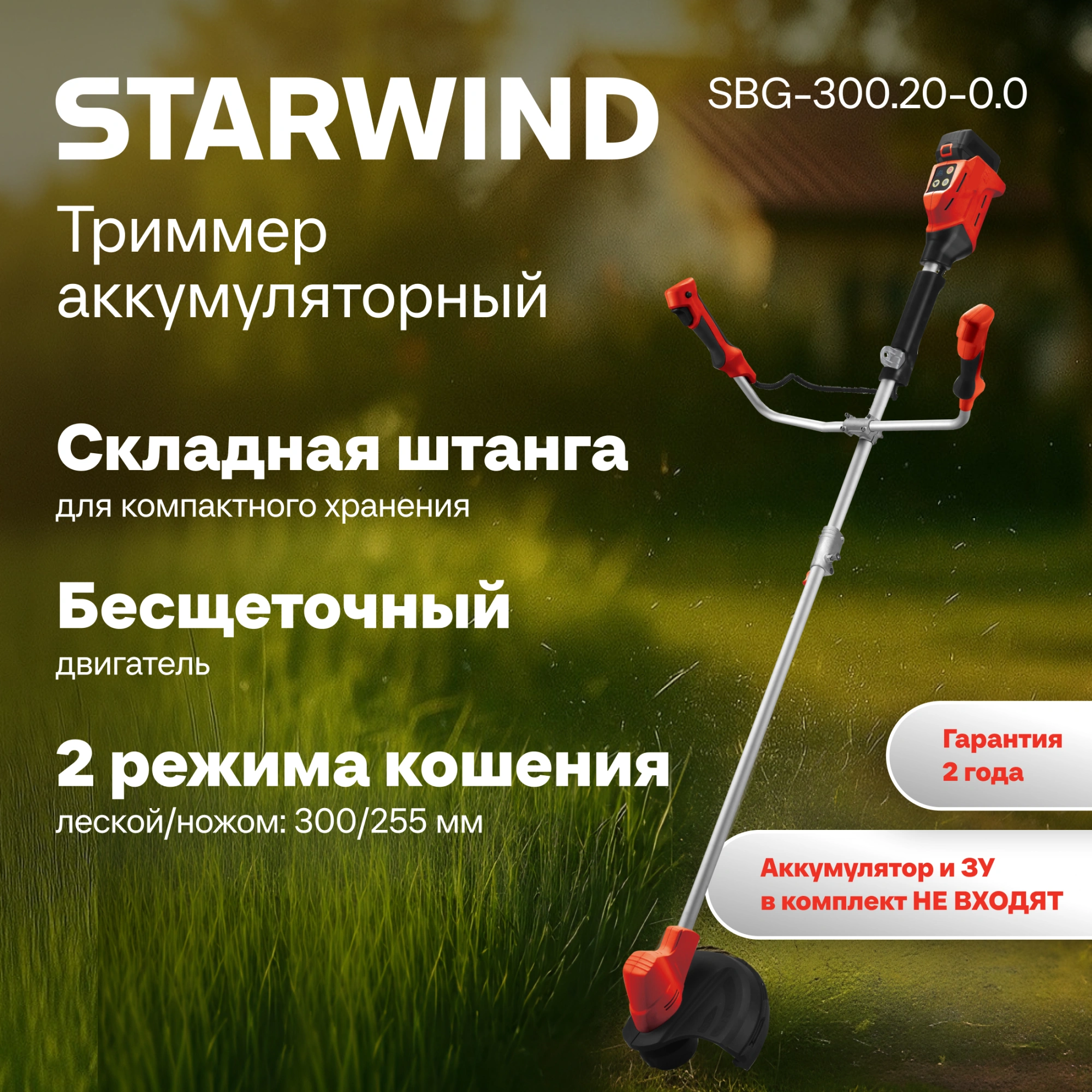 Триммер электрический Starwind SBG-300.20-0.0 аккум. разбор.штан. реж.эл.:леска/ нож