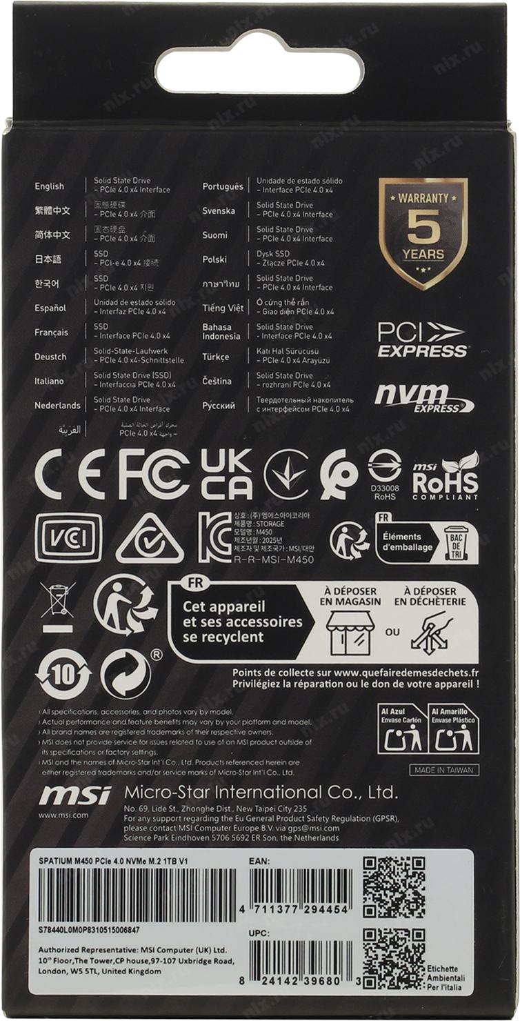 Накопитель SSD 1Tb MSI SPATIUM M450 - это высокопроизводительное устройство хранения данных, которое обеспечивает быструю и надежную работу вашего компьютера. Этот SSD предназначен для внутреннего использования и обладает форм-фактором M.2, что позволяет установить его непосредственно на материнскую плату вашего устройства. Одной из ключевых особенностей накопителя MSI SPATIUM M450 является его объем - целый 1 терабайт памяти, что обеспечивает достаточно места для хранения большого количества данных, программ и файлов. Теперь вы можете забыть о нехватке места на жестком диске и наслаждаться свободой и удобством работы с вашим компьютером. SSD MSI SPATIUM M450 оснащен контроллером NAND Phison PS5019-E19T, который обеспечивает высокую скорость чтения и записи данных. Благодаря технологии PCIe 4.0 NVMe, этот накопитель способен обрабатывать данные с невероятной скоростью и обеспечивать быстрый доступ к вашим файлам. Благодаря форм-фактору M.2 и размеру 2280, накопитель MSI SPATIUM M450 легко устанавливается на материнскую плату вашего устройства и не занимает много места внутри корпуса. Это позволяет сэкономить место и обеспечить лучшую вентиляцию, что способствует более эффективной работе вашего компьютера. Накопитель SSD 1Tb MSI SPATIUM M450 - это надежное и мощное устройство, которое служит отличным решением для тех, кто ценит скорость работы и надежность хранения данных. Приобретите этот SSD и наслаждайтесь быстрой и комфортной работой вашего компьютера!