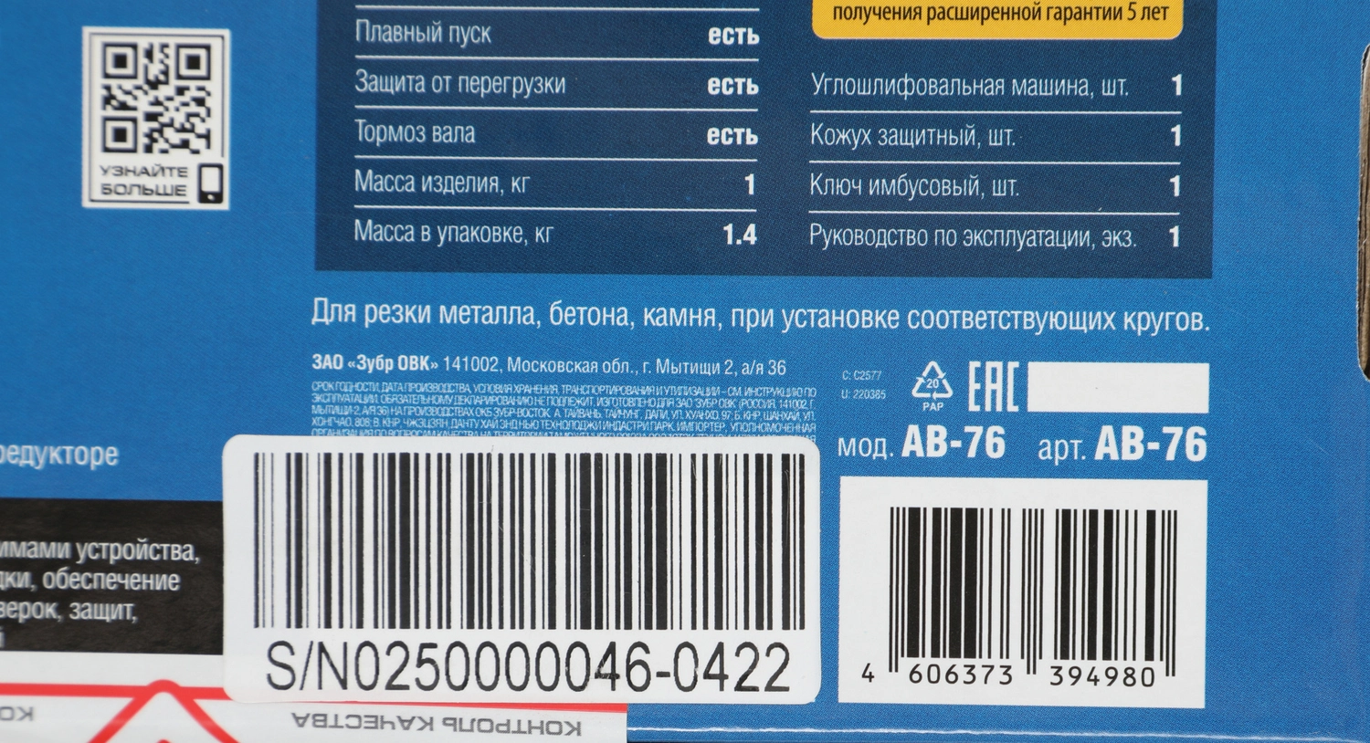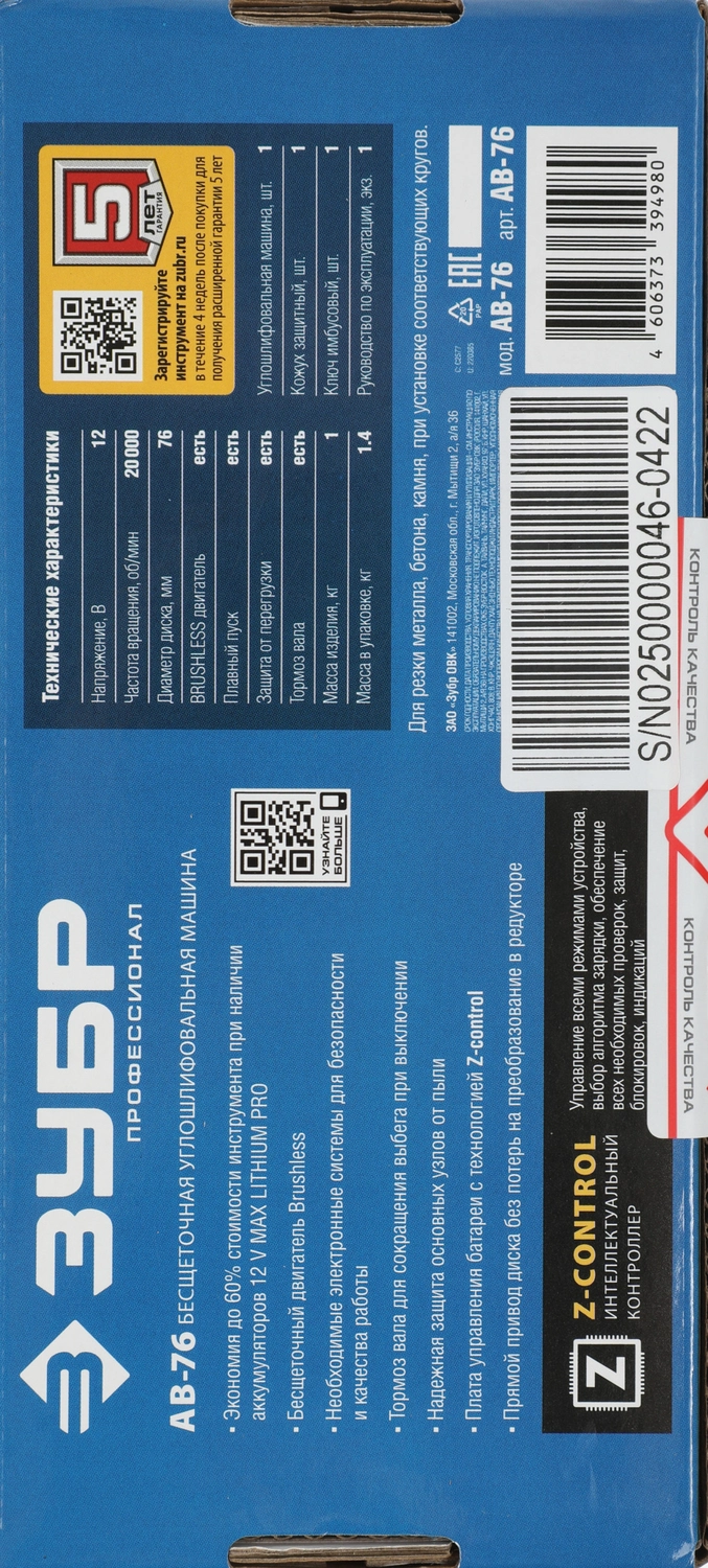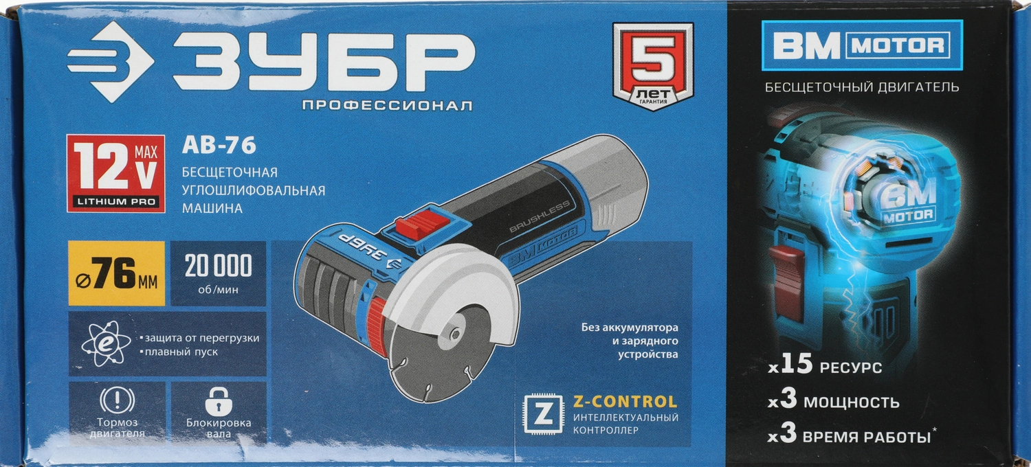 Углошлифовальная машина Зубр AB-76 20000об/ мин рез.шпин.:M5 d=76мм
