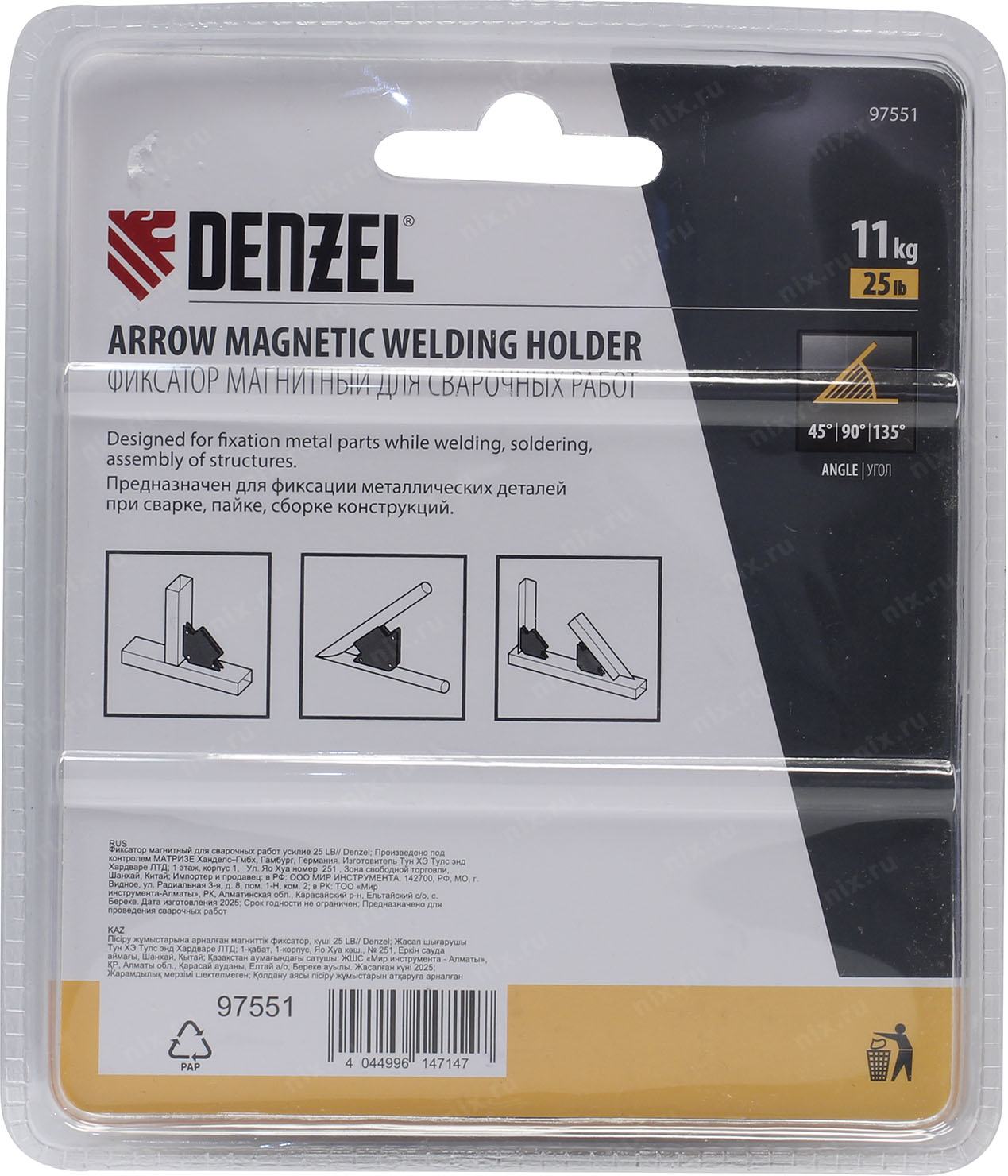 Магнитный фиксатор Denzel 25 LB значительно упрощает процесс сварочных и паяльных работ с металлическими профилями, уголками, трубами прямоугольной и круглой формы, пластинами и другим типом металла. Он позволяет быстро и легко зафиксировать конструкцию весом до 11 кг.