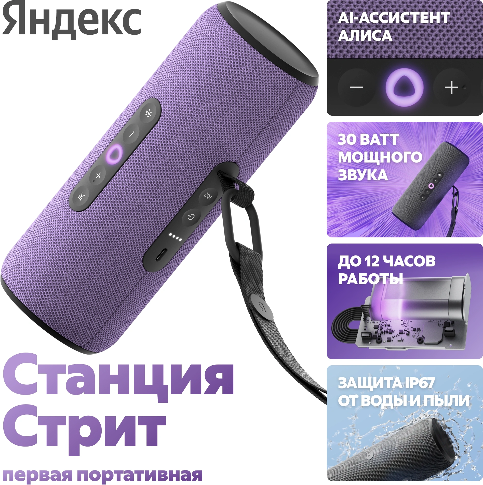 Умная колонка Yandex Стрит Алиса фиолетовый 30W 2.0 BT/ Wi-Fi 10м 3300mAh (YNDX-00030VIO) ЯНДЕКС